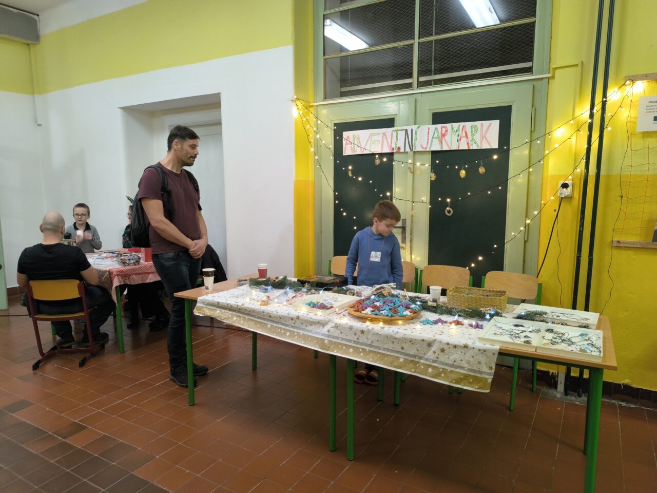 V předvánočním čase jsme měli možnost se na chvíli zastavit a užít si společný čas s rodiči, prarodiči, kamarády a všemi, kteří si přišli vychutnat vánoční atmosféru, kterou si pro všechny návštěvníky školy připravily děti se svými pedagogy. Pořádali jsme totiž první ADVENTNÍ JARMARK TYRŠOVKY. Všichni, kteří se zapojili, vyráběli, pekli, zdobili, pletli, háčkovali, navlékali korálky a jinak se podíleli na tom, aby jejich třída ukázala, jak šikovné mají ručičky se moc snažili a opravdu se jim to povedlo. Návštěvníci si tak mohli krásné výrobky za drobný příspěvek pro třídu odnést a věřím, že jim bude doma ve vánoční výzdobě dělat radost. Kdo měl chuť, mohl si také nějaký výrobek sám vytvořit. U naší třídy si mohly děti, ale i dospělí vyškrábávat papírové vánoční ozdobičky. Všechny děti z naší třídy, které se do vyrábění a následně i do prodeje na jarmarku zapojily moc chválím a rodičům děkuji za pomoc a trpělivost, při čekání na své ratolesti, než trhy skončí.