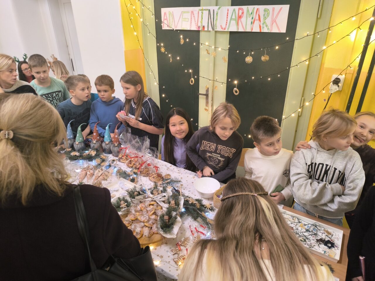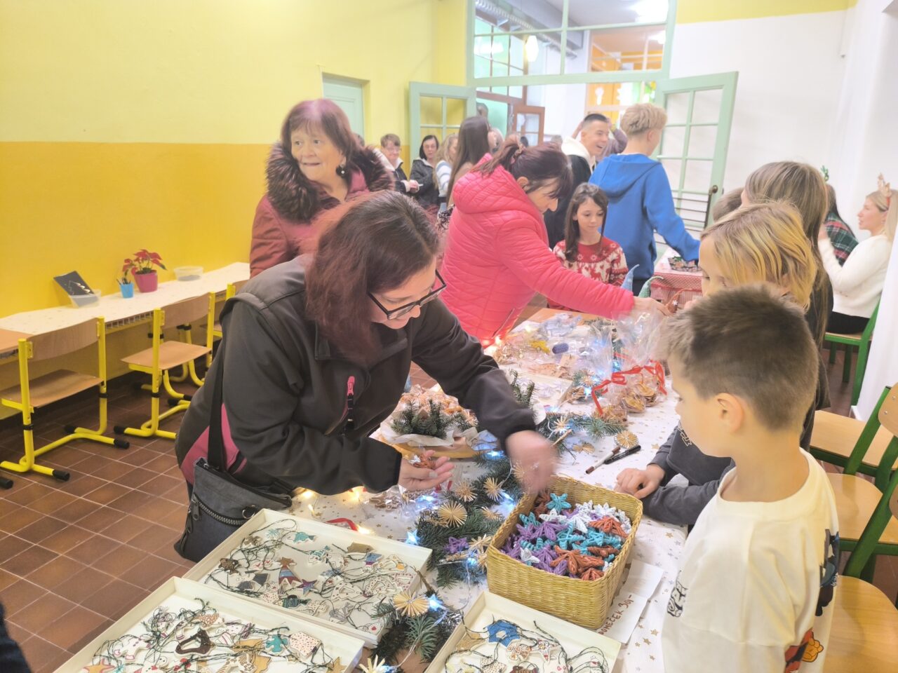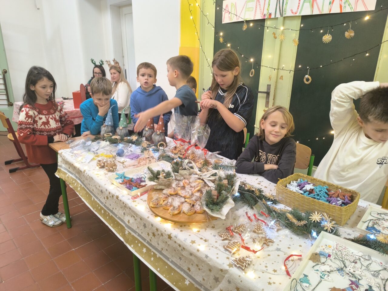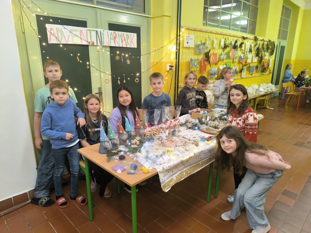 V předvánočním čase jsme měli možnost se na chvíli zastavit a užít si společný čas s rodiči, prarodiči, kamarády a všemi, kteří si přišli vychutnat vánoční atmosféru, kterou si pro všechny návštěvníky školy připravily děti se svými pedagogy. Pořádali jsme totiž první ADVENTNÍ JARMARK TYRŠOVKY. Všichni, kteří se zapojili, vyráběli, pekli, zdobili, pletli, háčkovali, navlékali korálky a jinak se podíleli na tom, aby jejich třída ukázala, jak šikovné mají ručičky se moc snažili a opravdu se jim to povedlo. Návštěvníci si tak mohli krásné výrobky za drobný příspěvek pro třídu odnést a věřím, že jim bude doma ve vánoční výzdobě dělat radost. Kdo měl chuť, mohl si také nějaký výrobek sám vytvořit. U naší třídy si mohly děti, ale i dospělí vyškrábávat papírové vánoční ozdobičky. Všechny děti z naší třídy, které se do vyrábění a následně i do prodeje na jarmarku zapojily moc chválím a rodičům děkuji za pomoc a trpělivost, při čekání na své ratolesti, než trhy skončí.