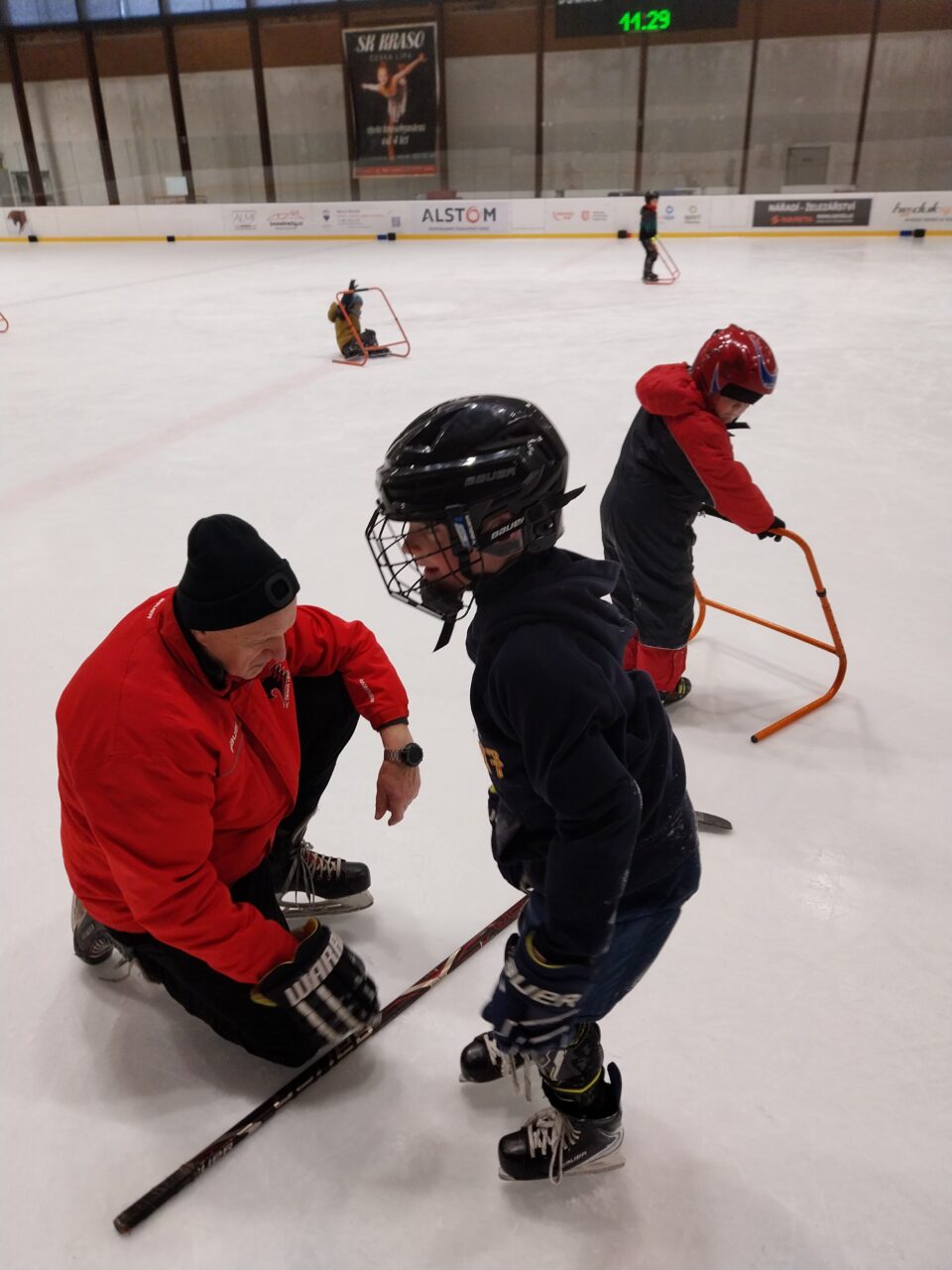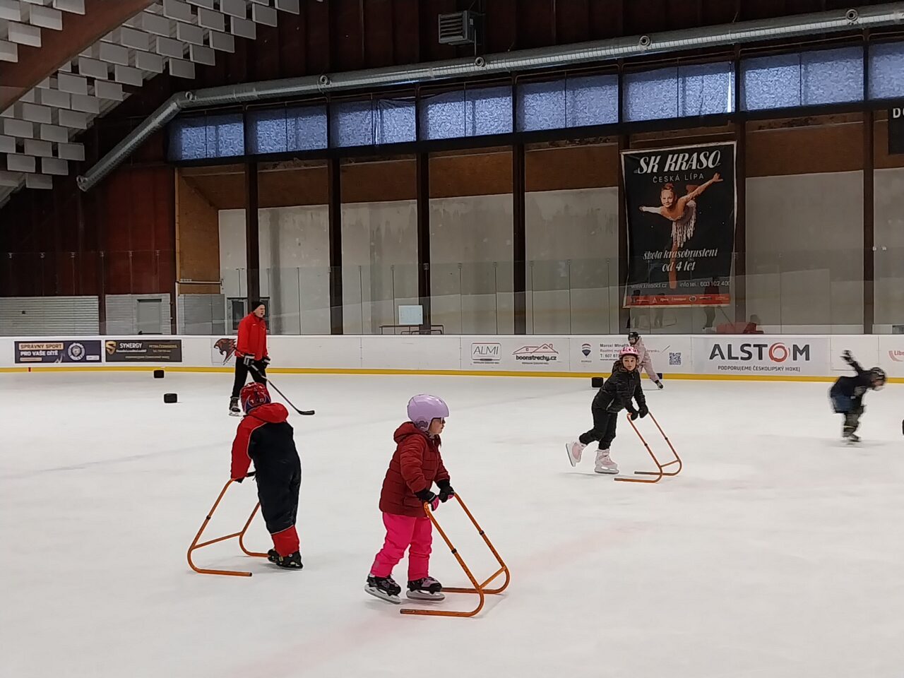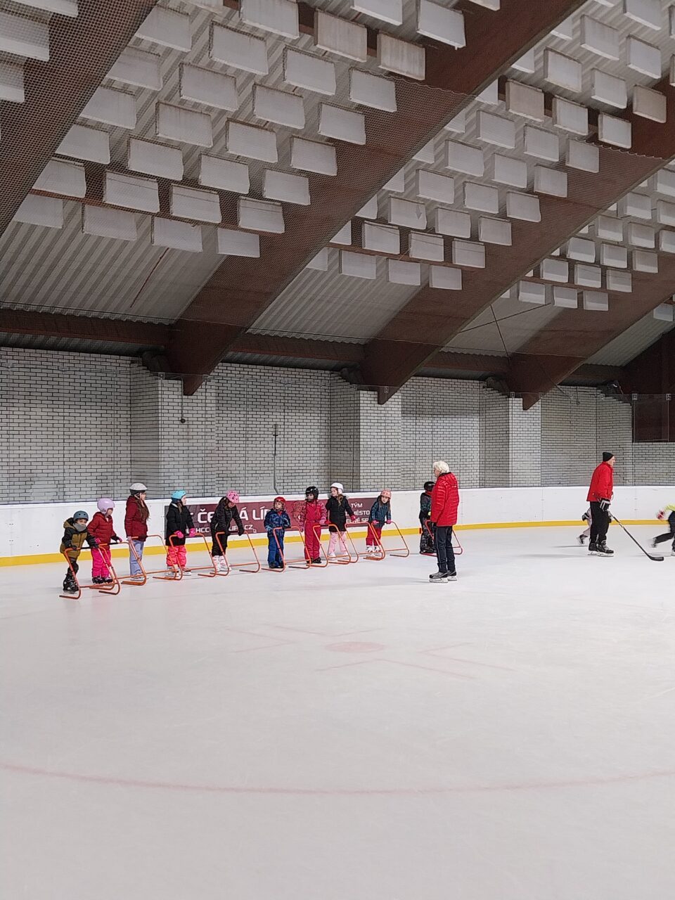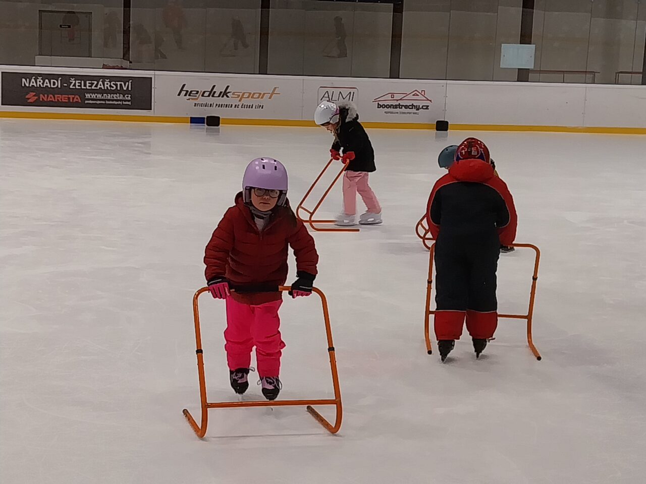 Tři měsíce jsme se učili plavat a nyní jsme plavky vyměnili za brusle, rukavice …, plavčíky za trenéry bruslení a začínáme bruslit. Všichni děláme veliké pokroky.