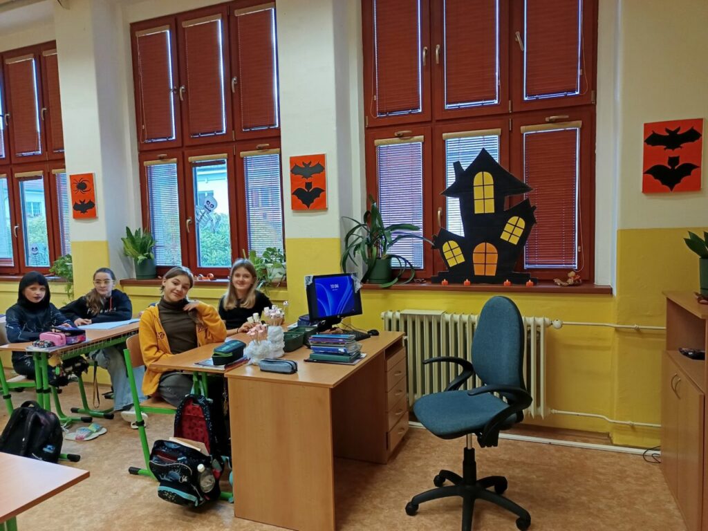 Ve čtvrtek 23.10. jsme ve škole slavili Halloween. Školní samospráva připravila pro žáky soutěž o nejlepší výzdobu třídy a hlasování o nejhezčí halloweenskou masku.
