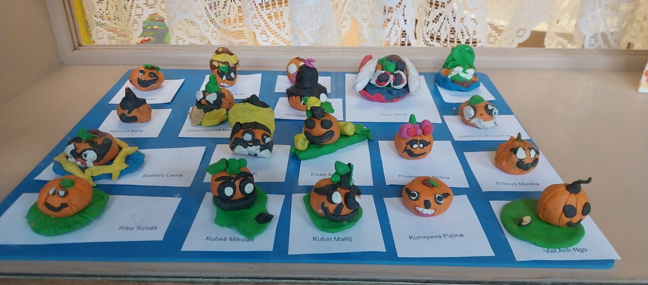 Na hodinách výtvarné výchovy a pracovního vyučování jsme vyráběli z papíru i modelíny halloweenské dýně. A opravdu se nám moc povedly.