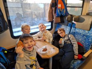 Zdravíme Vás všechny ze sluncem zalitých hor. Dojeli jsme v pořádku, ubytovali se v krásných pokojích a dali si výborný oběd (kuřecí vývar s nudlemi a masové rizoto s oblohou). Po odpolední svačince jsme vyrazili na svah vyzkoušet boby a obhlédnout terén na zítřejší lyžovačku. Teď už jsme po večeři ( knedlo, zelo, vepřo), pohráli si a jdeme na kutě. Vlastně už spinkáme. Zdravíme všechny maminky, tatínky, babičky a dědečky. Přejeme dobrou noc.