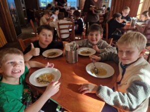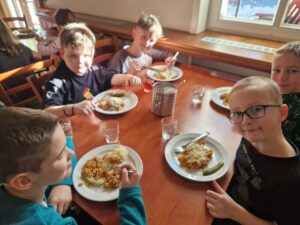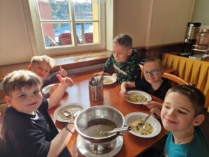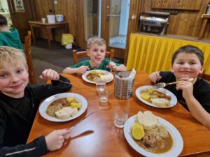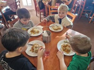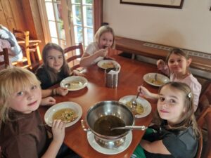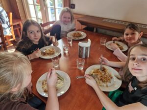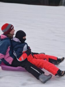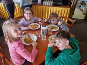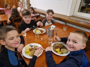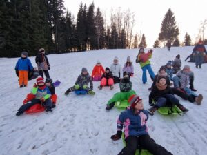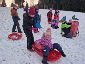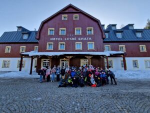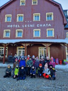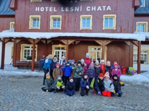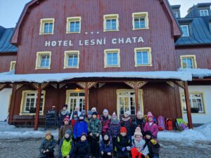 Zdravíme Vás všechny ze sluncem zalitých hor. Dojeli jsme v pořádku, ubytovali se v krásných pokojích a dali si výborný oběd (kuřecí vývar s nudlemi a masové rizoto s oblohou). Po odpolední svačince jsme vyrazili na svah vyzkoušet boby a obhlédnout terén na zítřejší lyžovačku. Teď už jsme po večeři ( knedlo, zelo, vepřo), pohráli si a jdeme na kutě. Vlastně už spinkáme. Zdravíme všechny maminky, tatínky, babičky a dědečky. Přejeme dobrou noc.