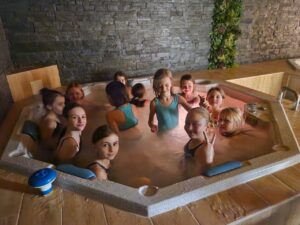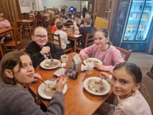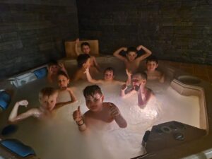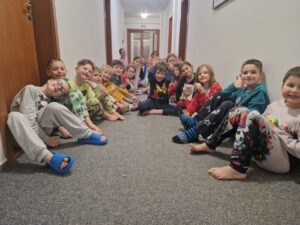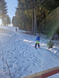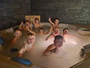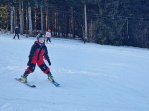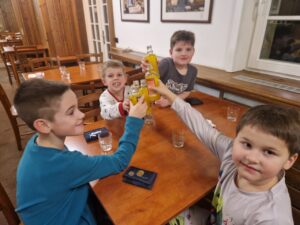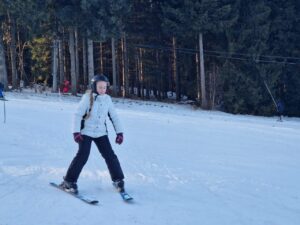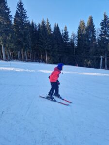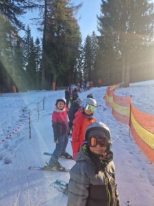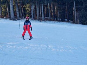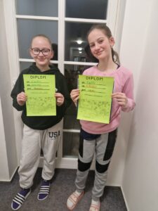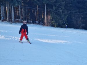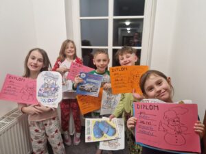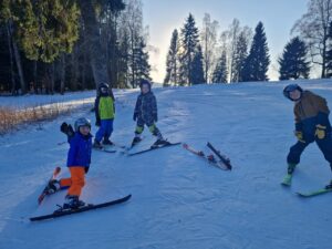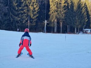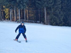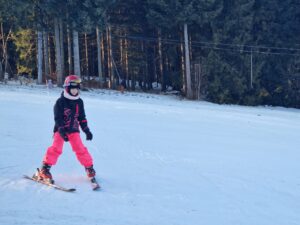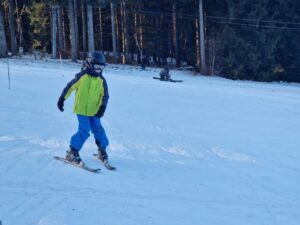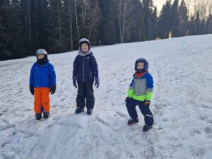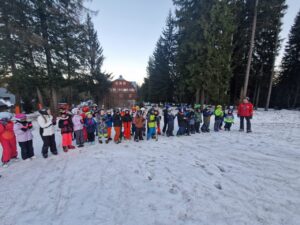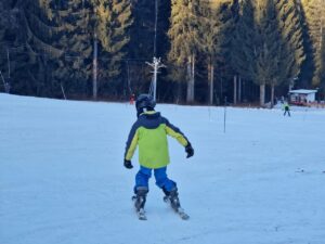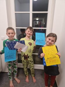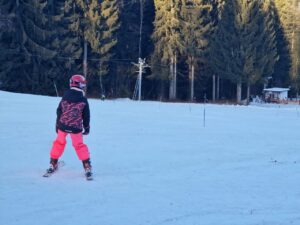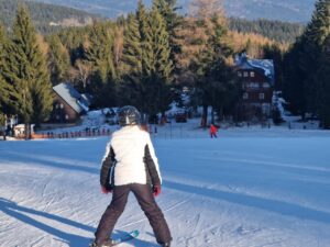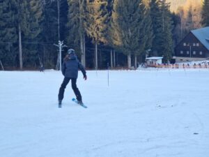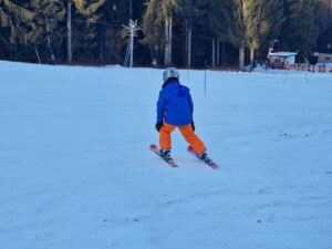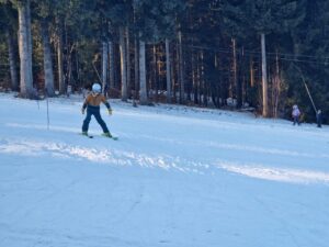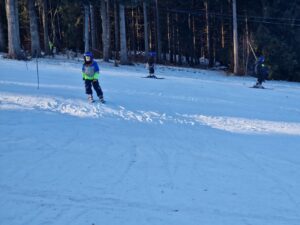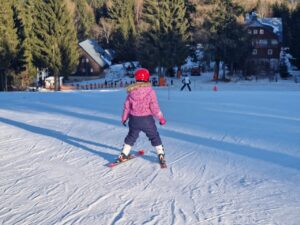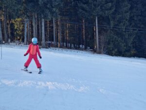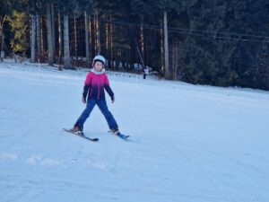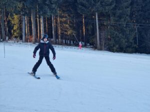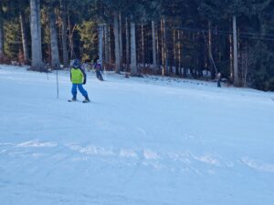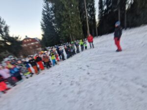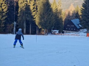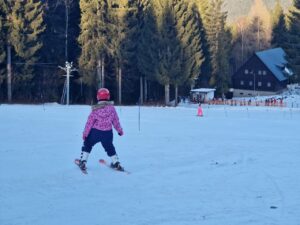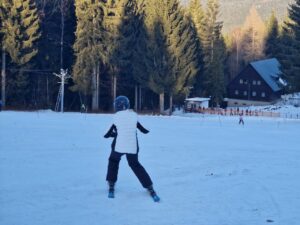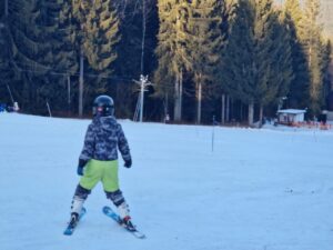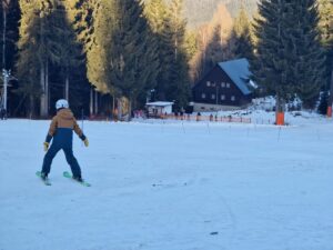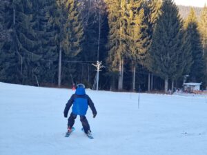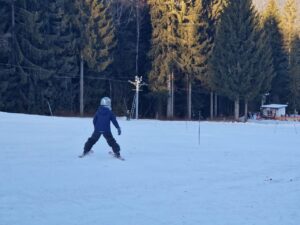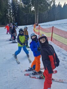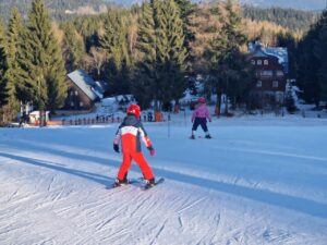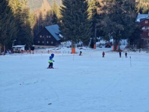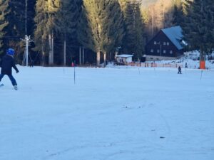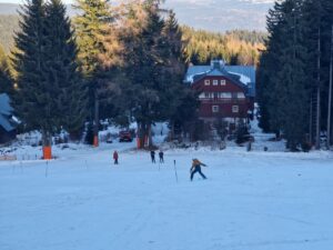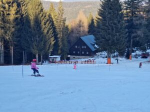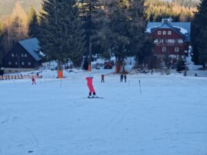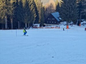Zasíláme poslední pozdrav z hor. Dnešní opět sluneční den jsme si opravdu užili. Celé dopoledne jsme trénovali na sjezdovce a jsme na sebe právem pyšní, protože dnes jsme všichni jezdili samostatně a kopec sjížděli bez doprovodu. Po gulášové polévce, rajské omáčce a následném odpočinku si pro nás paní učitelky a trenéři připravili závody ve slalomu. Úsek mezi brankami jsme projížděli kosmickou rychlostí. Za odměnu jsme pak zrelaxovali v teplých vířivkách. Po večeři ( dukátové buchtičky se šodó ) nás čekalo velké finále. Rozdělili jsme si odměny za úklid pokojů, výtvarné soutěži a samozřejmě ve sjezdu. Paní učitelka si pro nás opět připravila nádherné pamětní medaile a pamětní listy pro všechny, takže budeme mít na co vzpomínat a těšit se, že za rok se do Kořenova znovu vrátíme. A i když se nám domů skoro vůbec nechce, moc se na Vás těšíme. Takže přejeme dobrou noc a zítra ve 13:30 h na vlakovém nádraží.