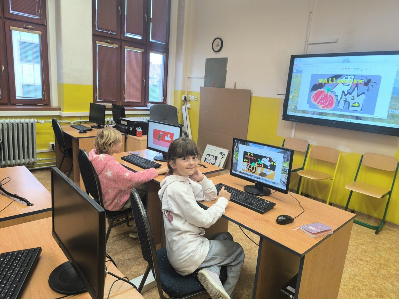 Na hodiny Informatiky se děti vždy těší. Práci na PC mají rády a baví je poznávat nové věci a získávat dovednosti v oblasti informačních technologií. Tentokrát se učily pracovat v programu Malování a svou hotovou práci si uložit do OneDrivu v Office 365. Protože se blíží Halloween tak jejich úkolem bylo vytvořit v programu Malování Halloweenský plakát. Jak se jim to povedlo, můžete vidět na fotografiích.
