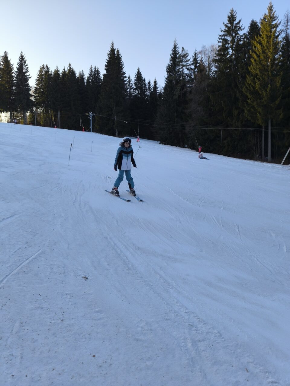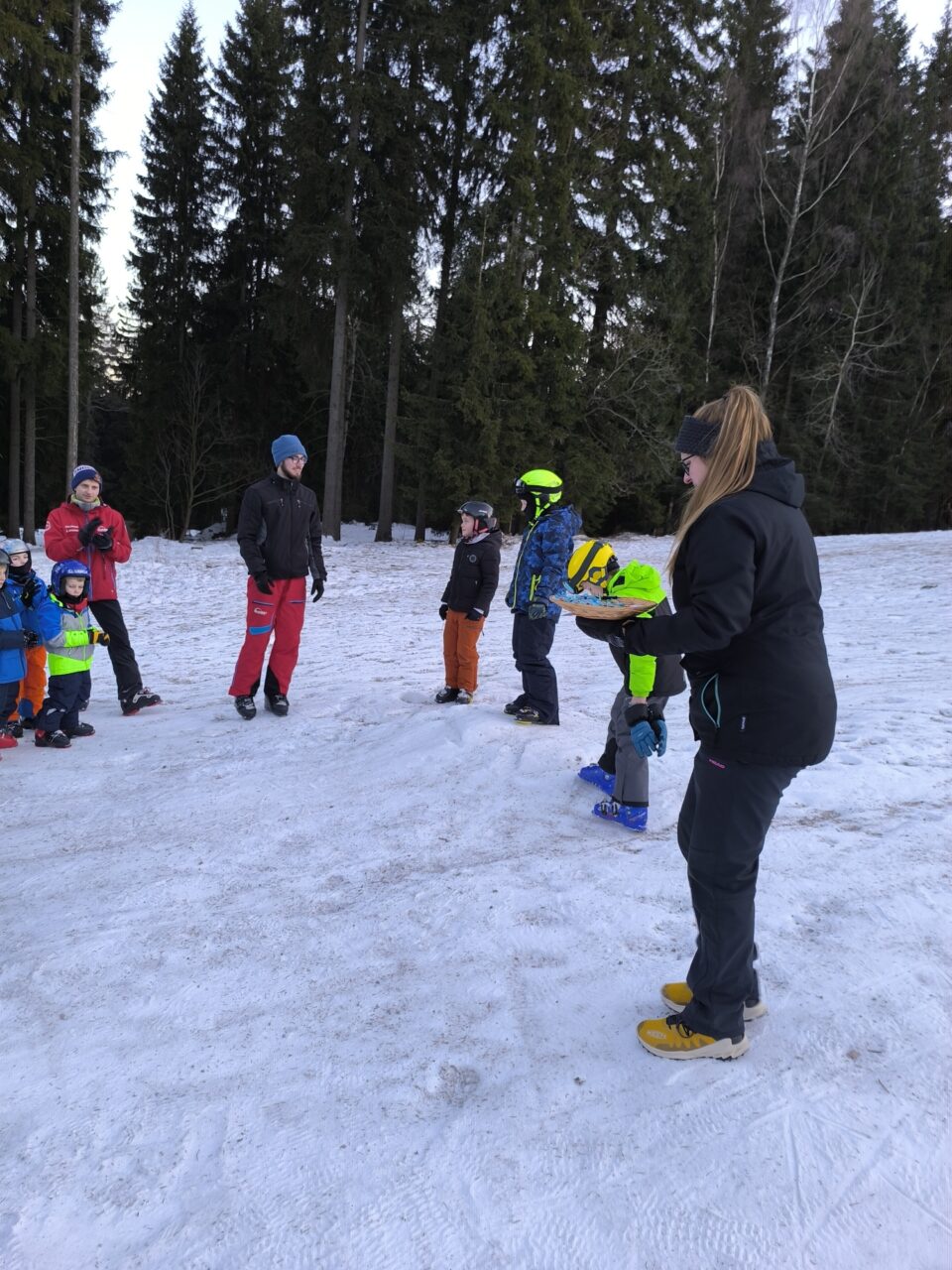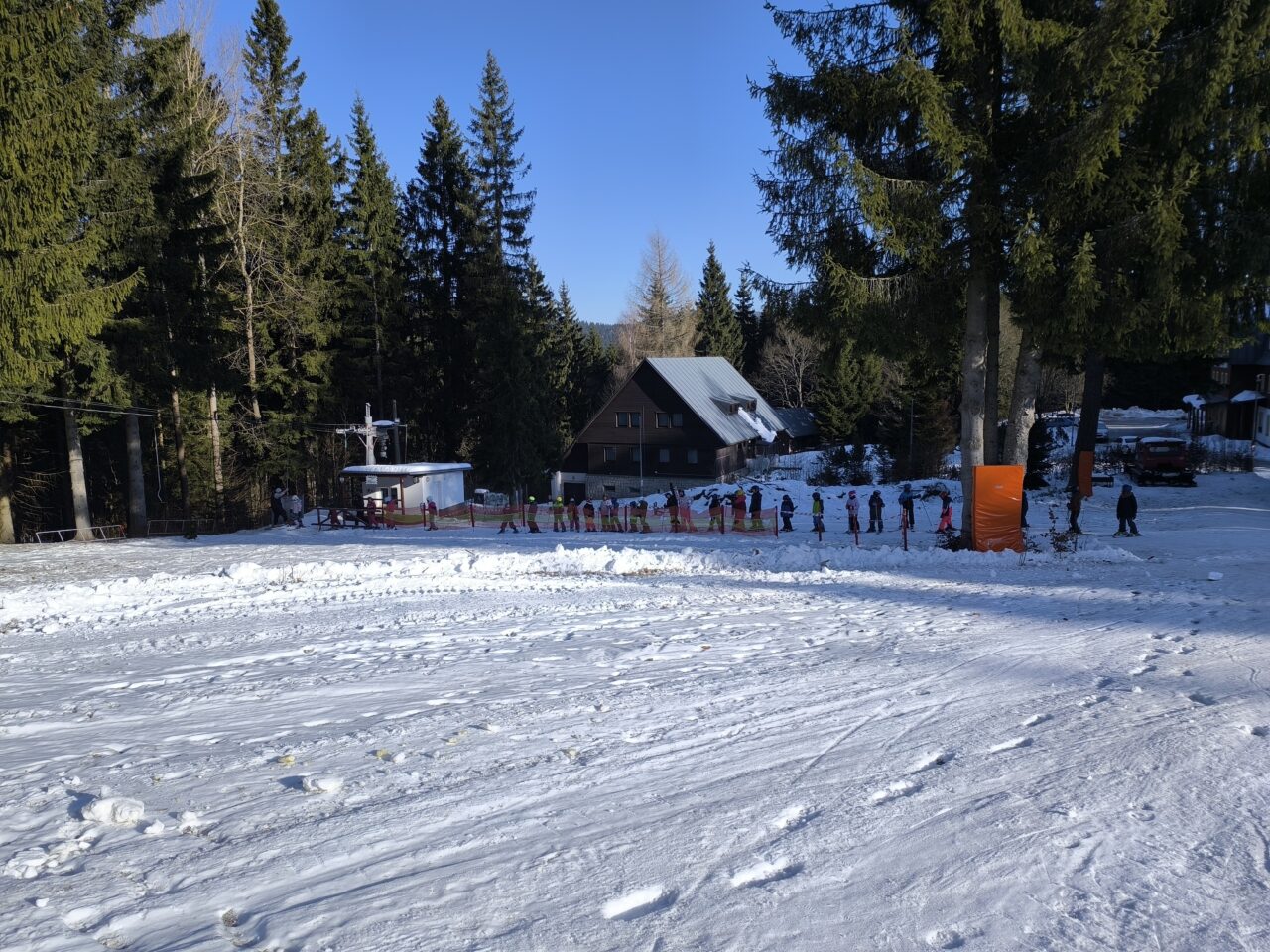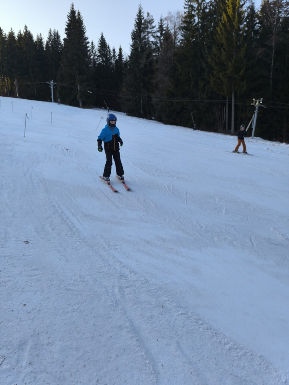 Dnešní sluneční, ale mrazivý den jsme si opravdu užili. Celé dopoledne jsme trénovali na sjezdovce. Mohli jsme na sebe být právem pyšní, protože jsme všichni jezdili samostatně, Naši lyžařští instruktoři dohlíželi na správný styl jízdy a učili nás pokročilejší techniku, jako je jízda na jedné lyži anebo pozadu. Po obědě a následném odpočinku si pro nás paní učitelky a trenéři připravili závody ve slalomu. Úsek mezi brankami jsme projížděli kosmickou rychlostí a mnozí začátečníci v lyžování překvapili svým časem. Vyhlášení vítězů jednotlivých ročníků proběhlo přímo na sjezdovce, za bouřlivého potlesku všech zúčastněných závodníků. Po večeři nás ještě čekala odměna v podobě zasloužené relaxace v teplých hotelových vířivkách. V závěru dne jsme si ještě všichni společně zhodnotili naše zážitky z tohoto týdne, převzali od paní učitelky a paní vychovatelky zasloužené sladké odměny, diplom a průkaz lyžaře a lyžařky. Před vyhlášenou večerkou ještě zůstalo trochu času na hudbu a tanec. Zítra hurá domů, už teď se nám po Kořenové stýská.