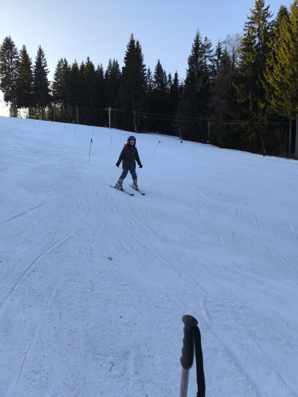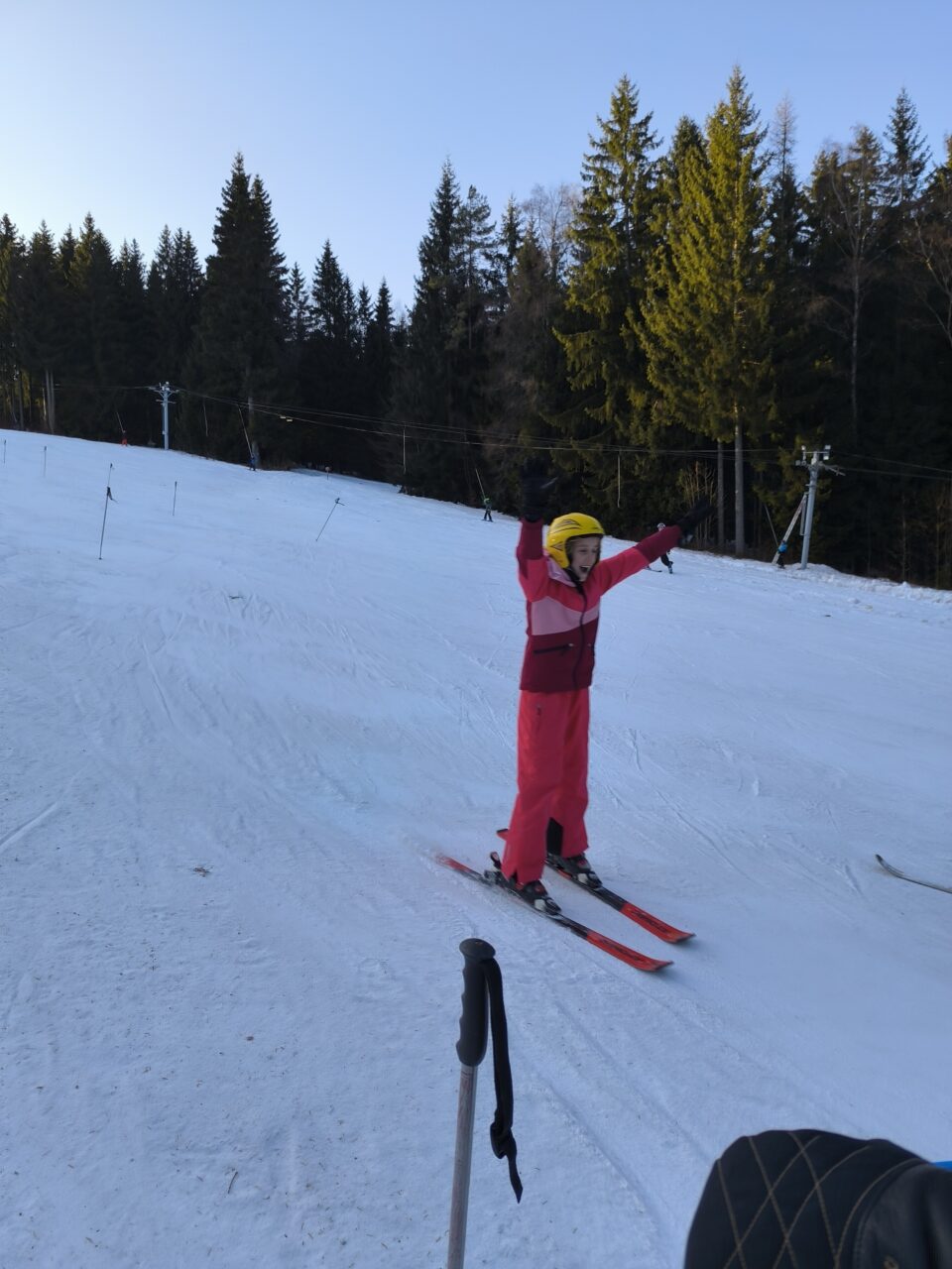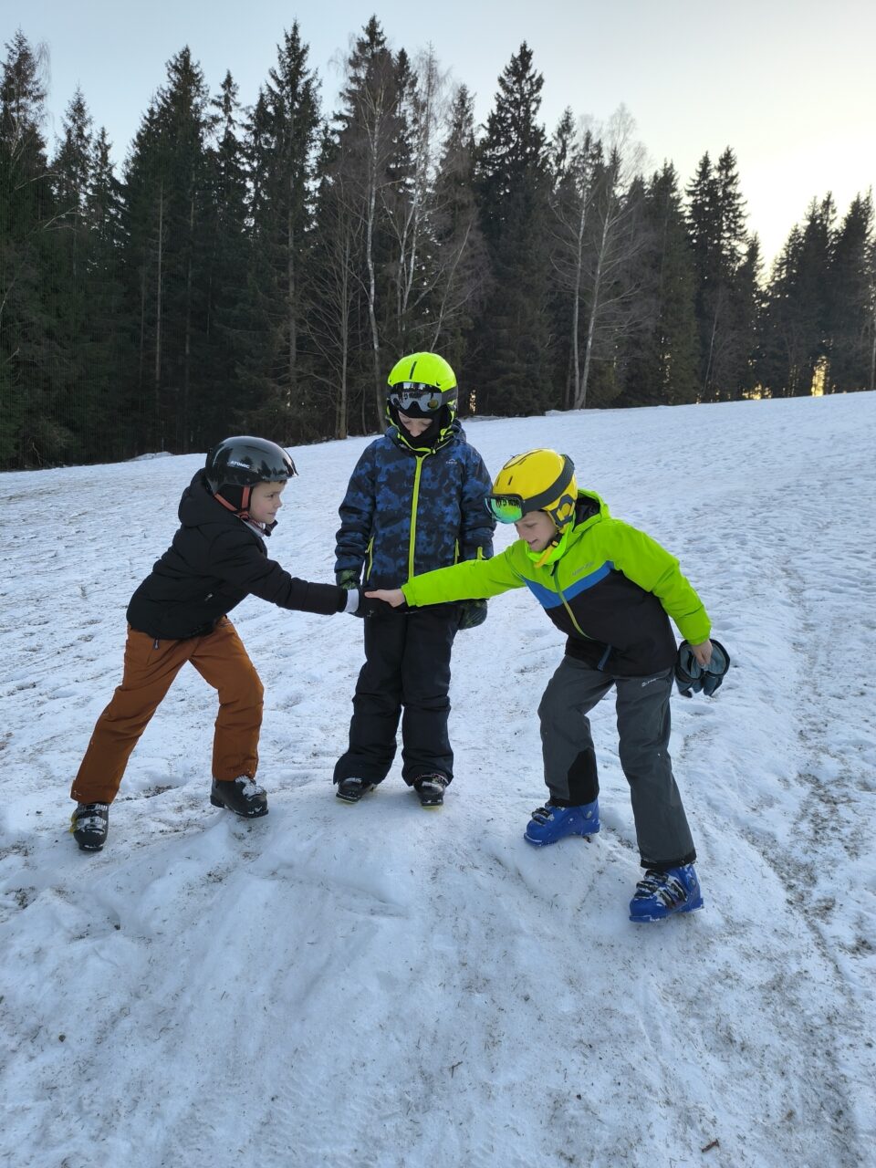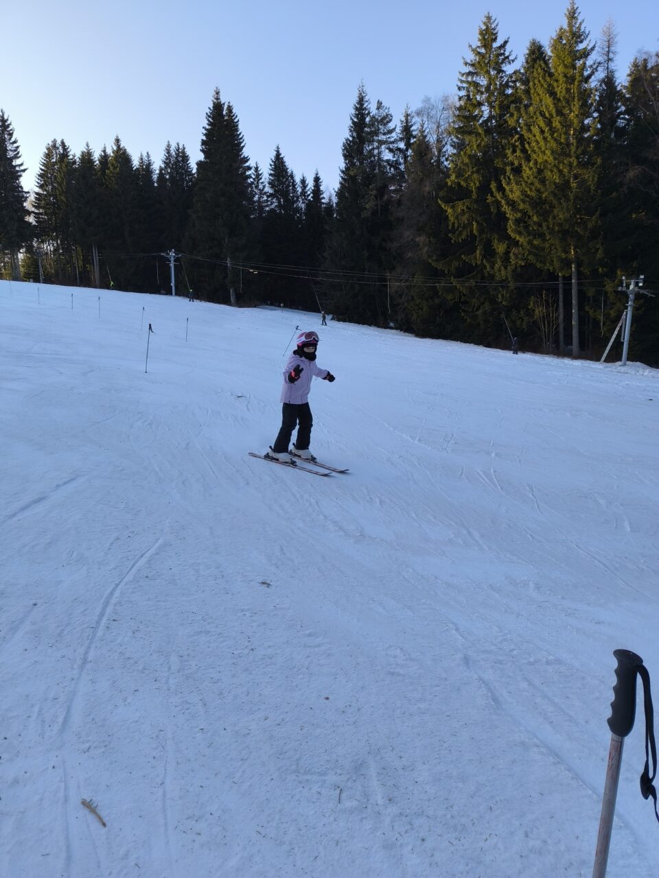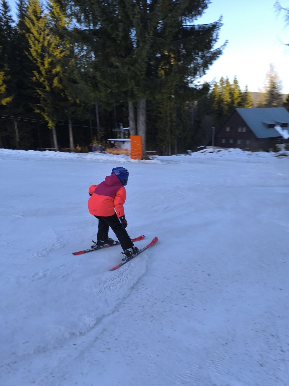 Dnešní sluneční, ale mrazivý den jsme si opravdu užili. Celé dopoledne jsme trénovali na sjezdovce. Mohli jsme na sebe být právem pyšní, protože jsme všichni jezdili samostatně, Naši lyžařští instruktoři dohlíželi na správný styl jízdy a učili nás pokročilejší techniku, jako je jízda na jedné lyži anebo pozadu. Po obědě a následném odpočinku si pro nás paní učitelky a trenéři připravili závody ve slalomu. Úsek mezi brankami jsme projížděli kosmickou rychlostí a mnozí začátečníci v lyžování překvapili svým časem. Vyhlášení vítězů jednotlivých ročníků proběhlo přímo na sjezdovce, za bouřlivého potlesku všech zúčastněných závodníků. Po večeři nás ještě čekala odměna v podobě zasloužené relaxace v teplých hotelových vířivkách. V závěru dne jsme si ještě všichni společně zhodnotili naše zážitky z tohoto týdne, převzali od paní učitelky a paní vychovatelky zasloužené sladké odměny, diplom a průkaz lyžaře a lyžařky. Před vyhlášenou večerkou ještě zůstalo trochu času na hudbu a tanec. Zítra hurá domů, už teď se nám po Kořenové stýská.