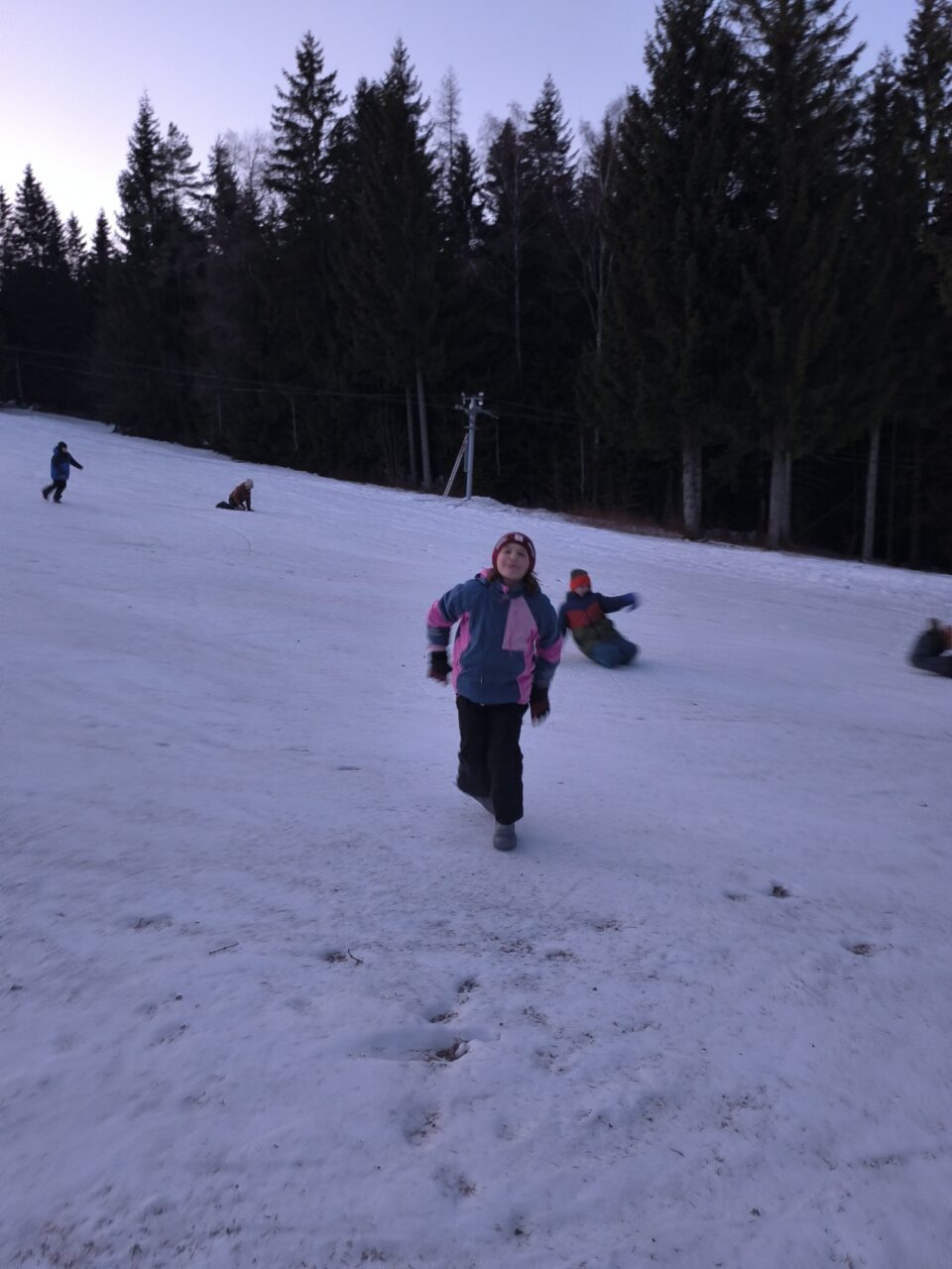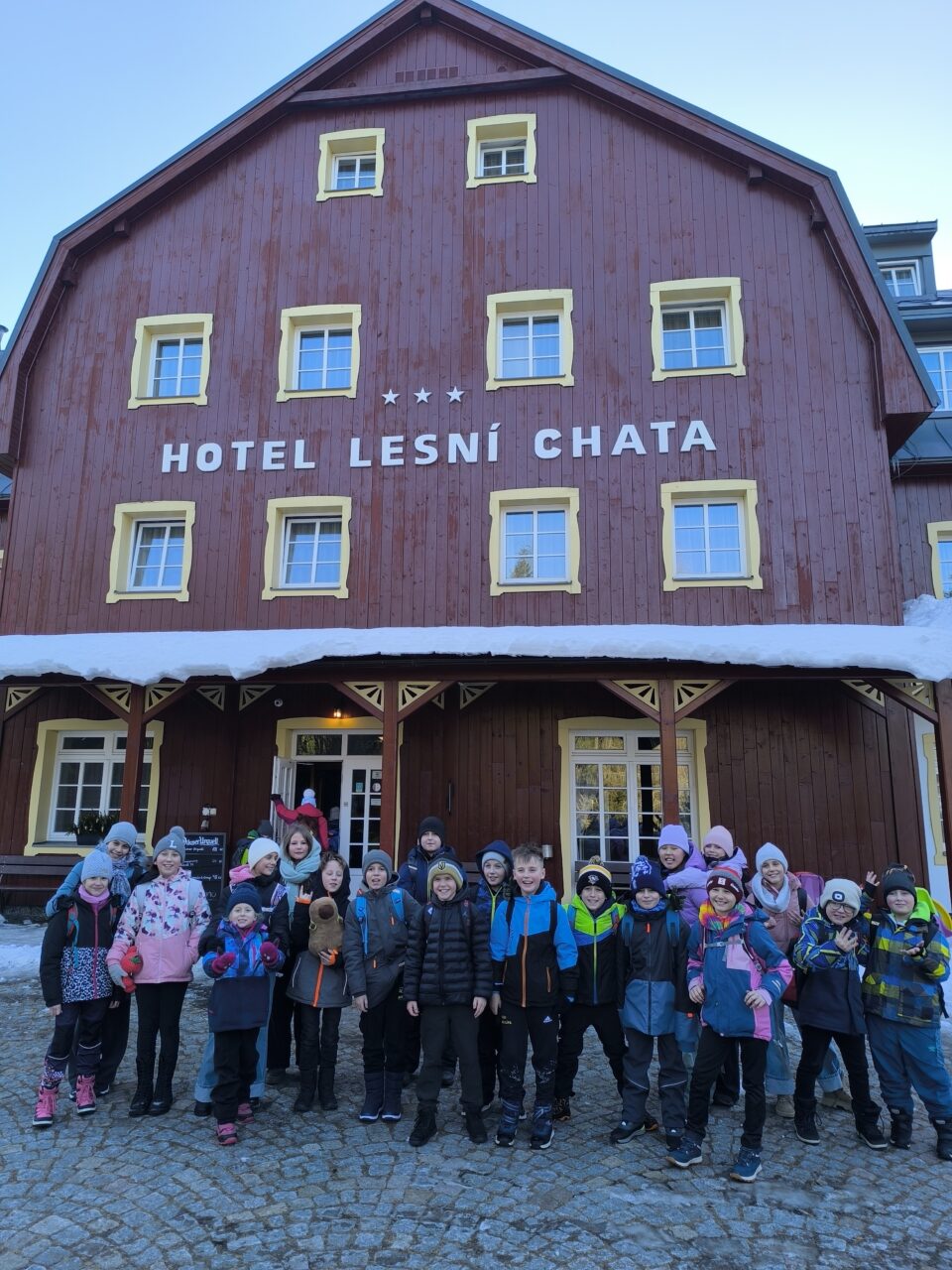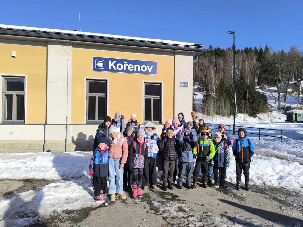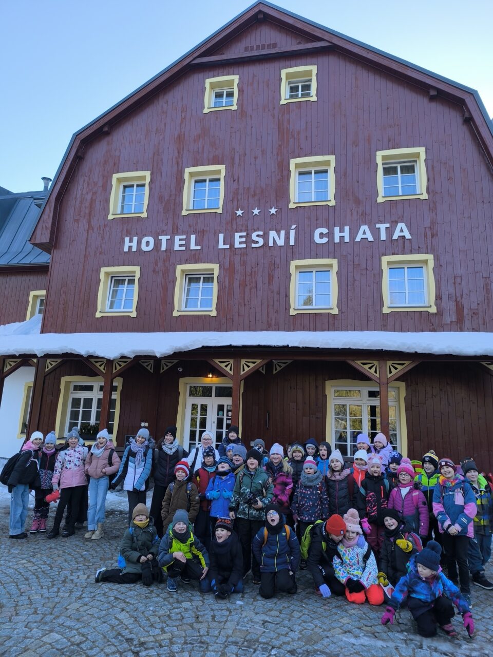 Po roce jsme se opět vypravili na zimní ozdravný pobyt do Kořenova. Po dvouhodinové cestě vlakem nás přivítal zasněžený Kořenov. Cíl naší cesty byl opět hotel Lesní chata. Po ubytování na pokojích jsme si vychutnali dobrý oběd a po odpoledním klidu si šli užít ven místní sněhovou nadílku. Sníh je tu na povrchu hodně zmrzlý a jízda na bobech byla tedy velmi rychlá a občas některé pády dost bolely. Nejlepší bylo běhání do kopce a následné válení sudů dolů. Seznámili jsme se také s lyžařskými instruktory, kteří nám přivezli lyžařkou výbavu, abychom hned zítra ráno mohli vyrazit na svah.