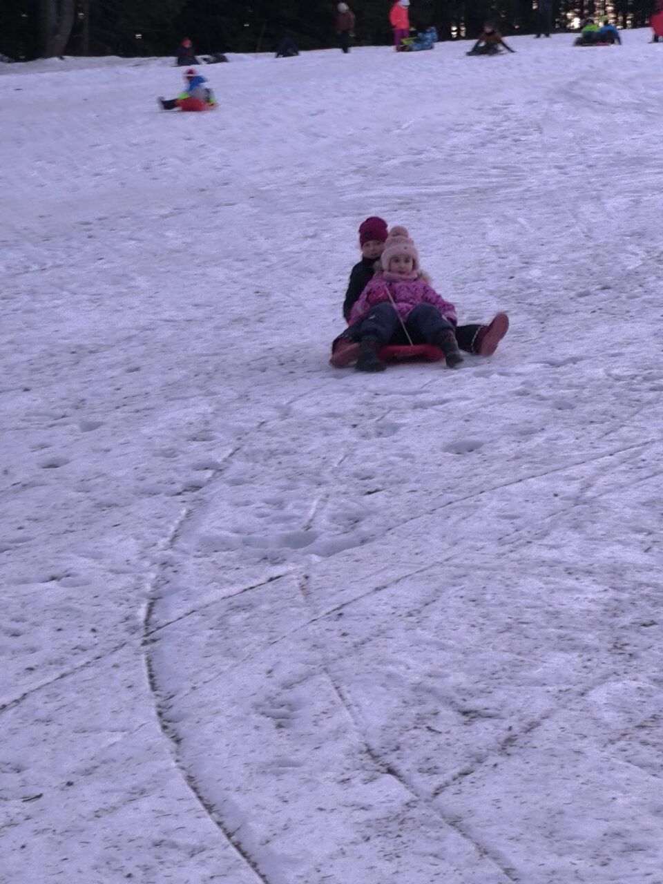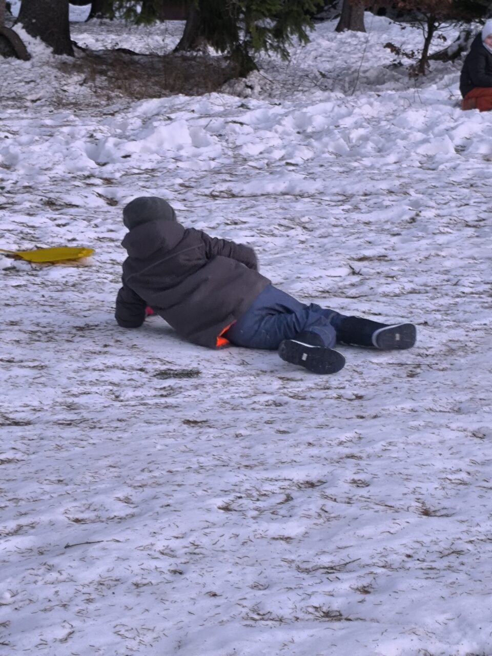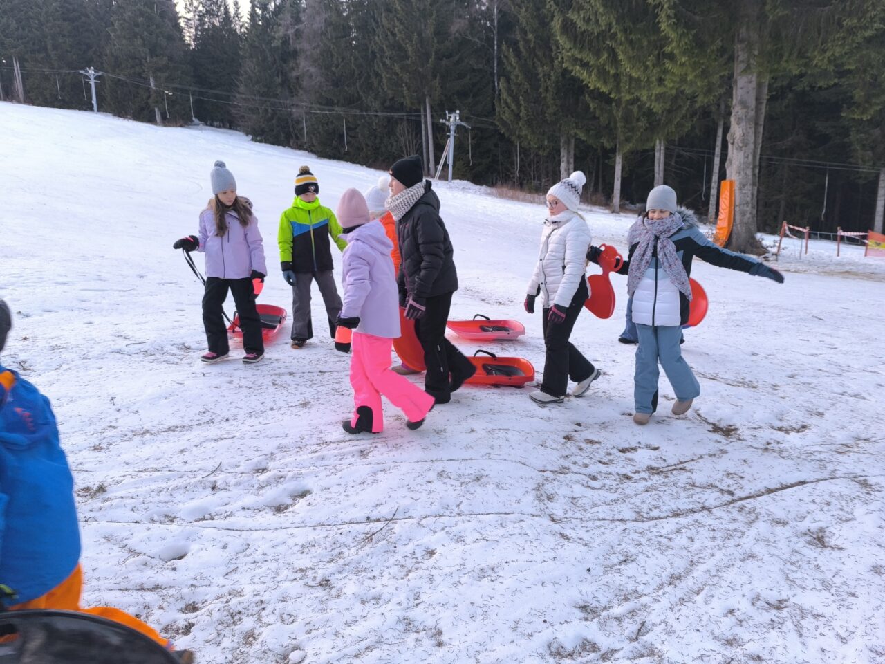 Po roce jsme se opět vypravili na zimní ozdravný pobyt do Kořenova. Po dvouhodinové cestě vlakem nás přivítal zasněžený Kořenov. Cíl naší cesty byl opět hotel Lesní chata. Po ubytování na pokojích jsme si vychutnali dobrý oběd a po odpoledním klidu si šli užít ven místní sněhovou nadílku. Sníh je tu na povrchu hodně zmrzlý a jízda na bobech byla tedy velmi rychlá a občas některé pády dost bolely. Nejlepší bylo běhání do kopce a následné válení sudů dolů. Seznámili jsme se také s lyžařskými instruktory, kteří nám přivezli lyžařkou výbavu, abychom hned zítra ráno mohli vyrazit na svah.