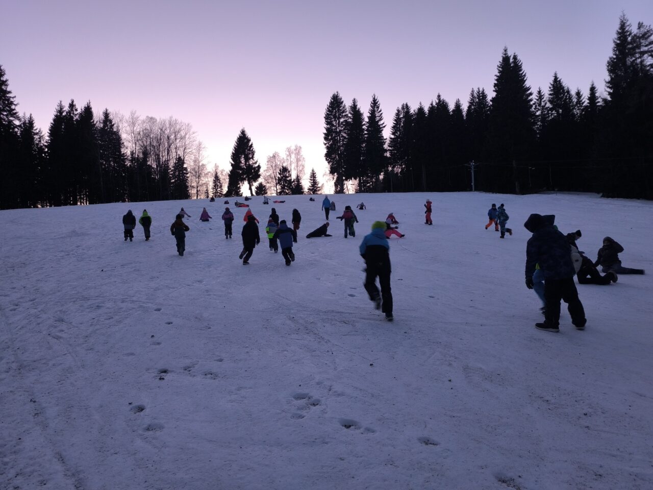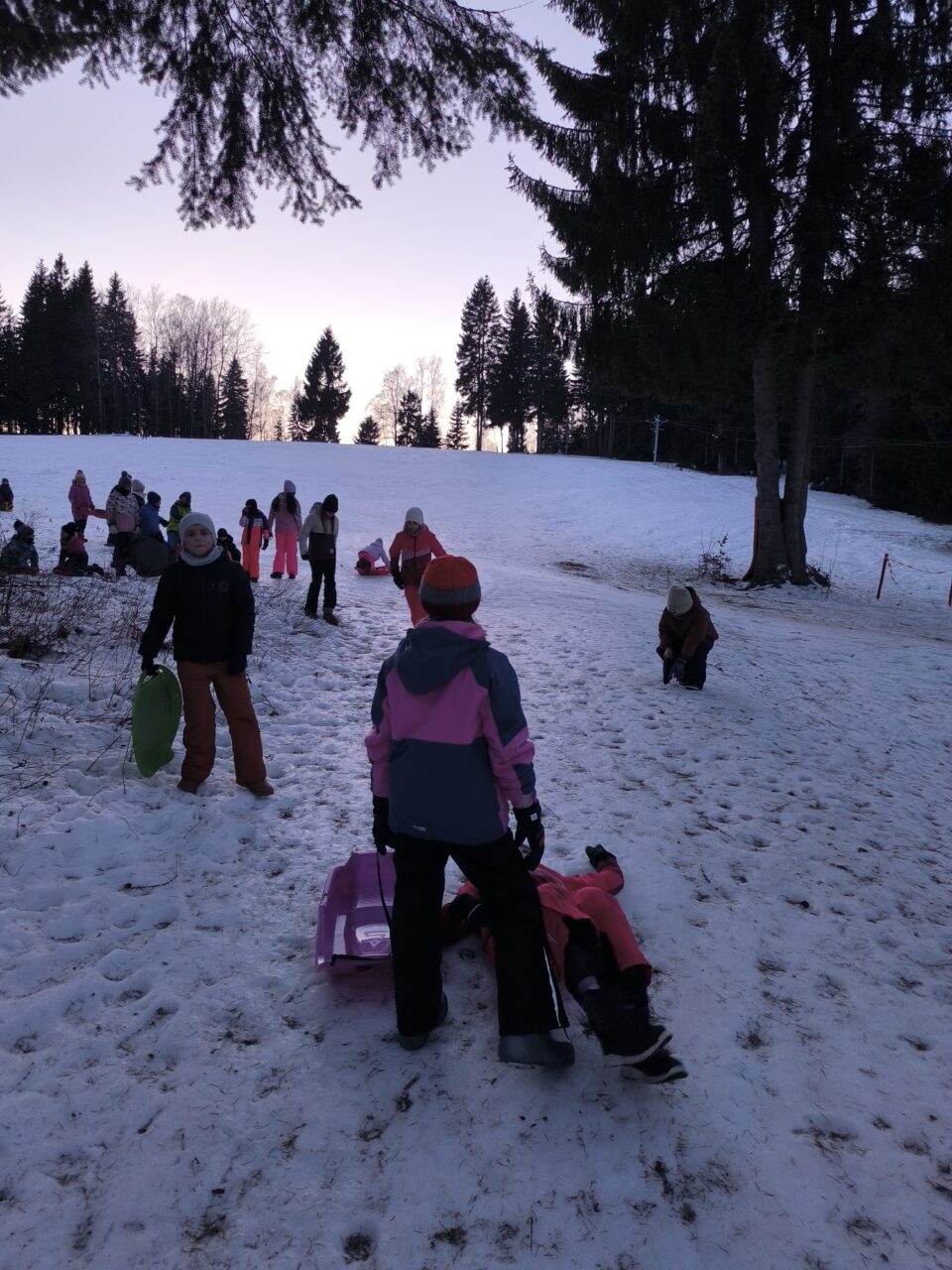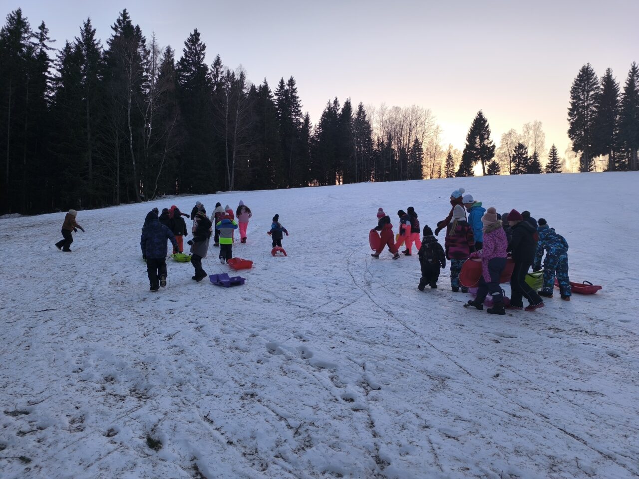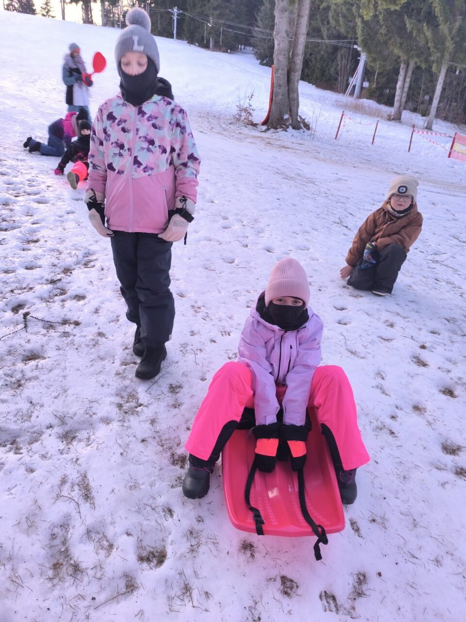Po roce jsme se opět vypravili na zimní ozdravný pobyt do Kořenova. Po dvouhodinové cestě vlakem nás přivítal zasněžený Kořenov. Cíl naší cesty byl opět hotel Lesní chata. Po ubytování na pokojích jsme si vychutnali dobrý oběd a po odpoledním klidu si šli užít ven místní sněhovou nadílku. Sníh je tu na povrchu hodně zmrzlý a jízda na bobech byla tedy velmi rychlá a občas některé pády dost bolely. Nejlepší bylo běhání do kopce a následné válení sudů dolů. Seznámili jsme se také s lyžařskými instruktory, kteří nám přivezli lyžařkou výbavu, abychom hned zítra ráno mohli vyrazit na svah.