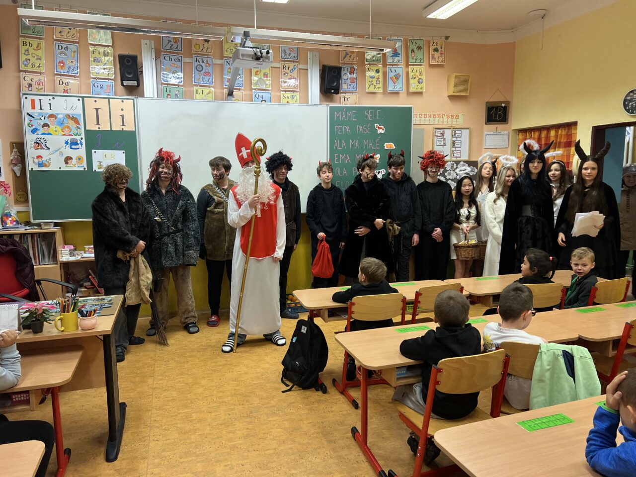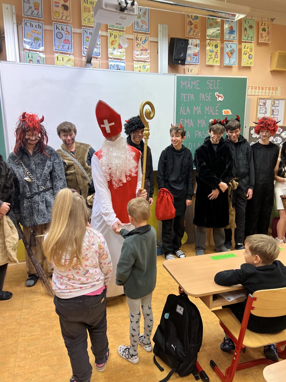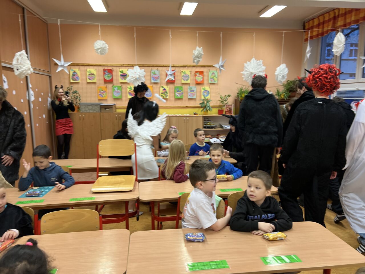 Dnes nás navštívil Mikuláš se svou družinou andělů a čertů. Děti jim zazpívaly písničku a za odměnu dostaly nadílku.