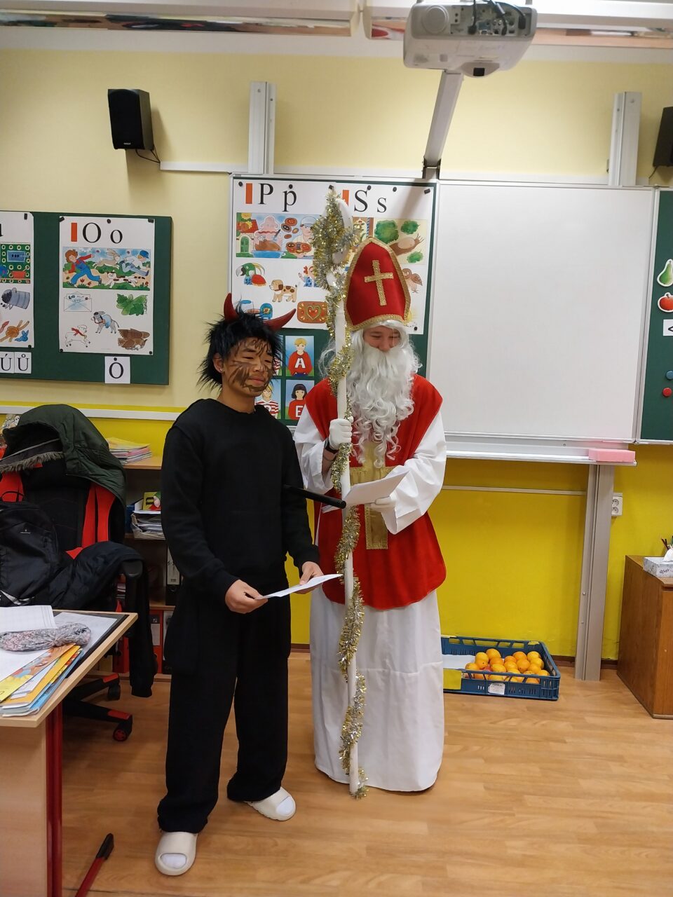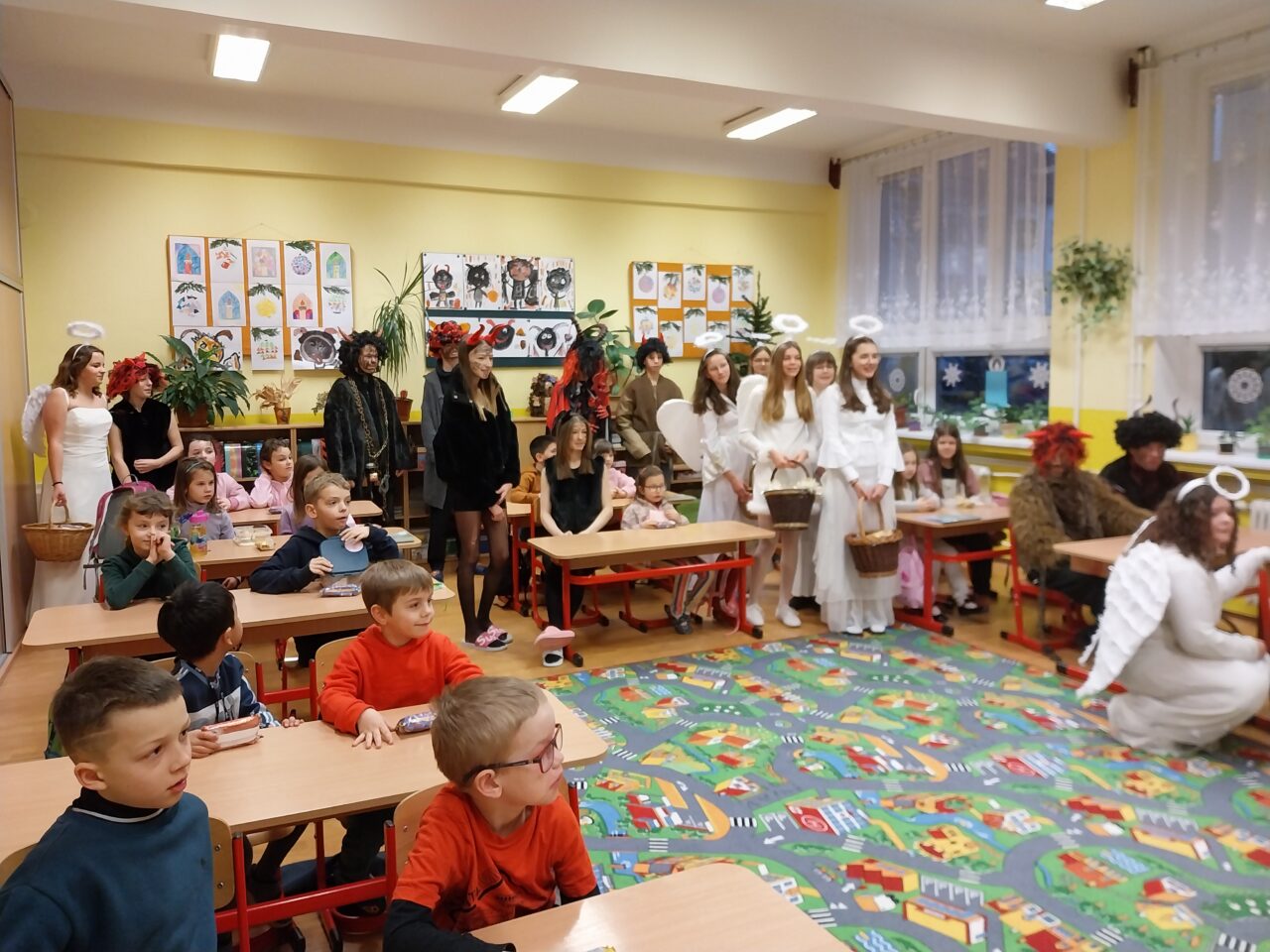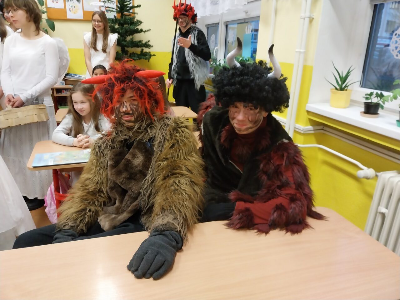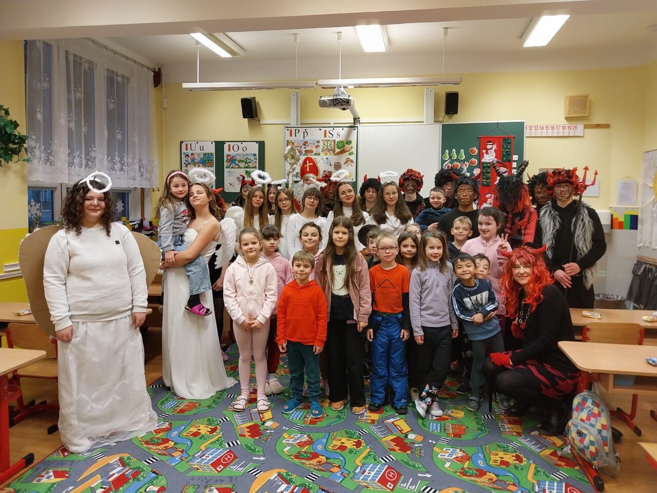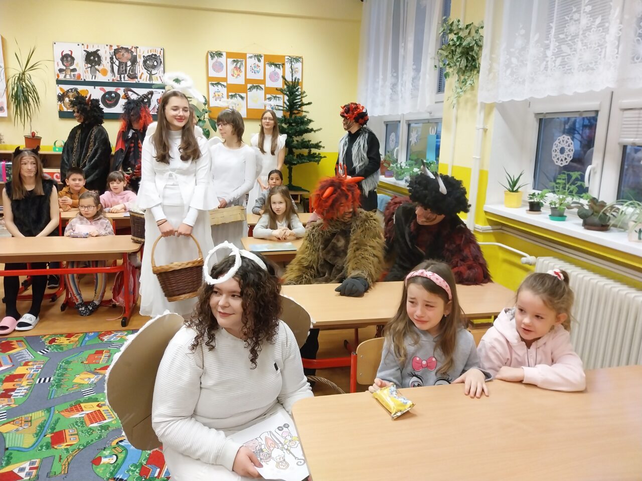 Dnes nás čekalo veliké překvapení. Navštívil nás Mikuláš se svojí družinou. Zazpívali jsme jim písničku a dostali jsme sladkou odměnu.