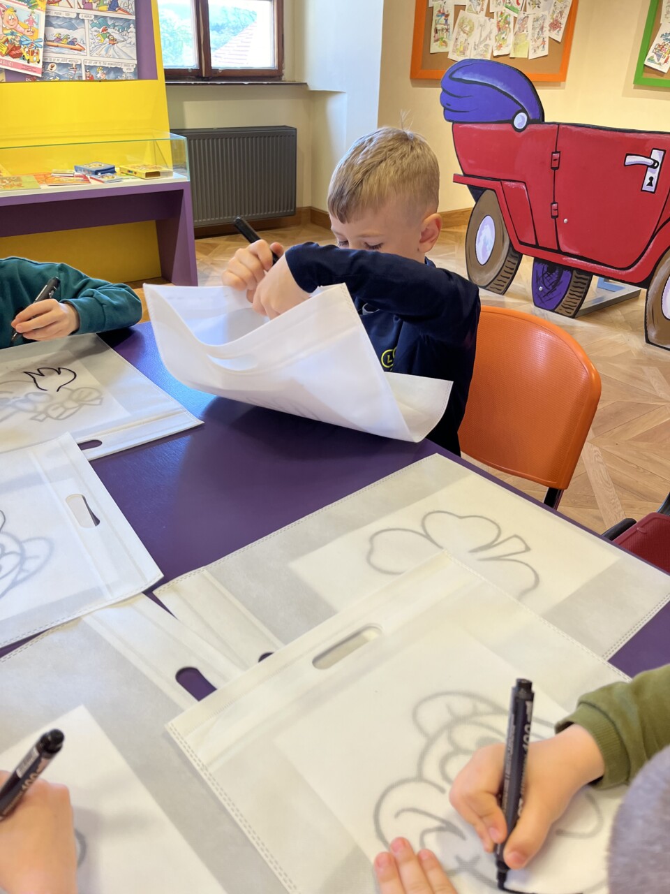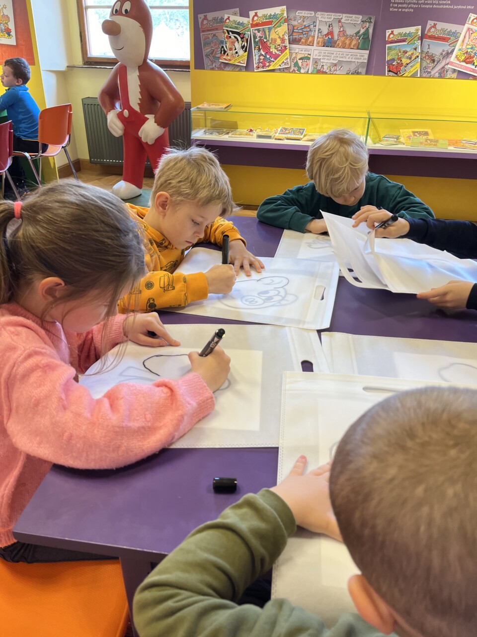 V Muzeu Čtyřlístku na zámku v Doksech jsme se dozvěděli spoustu zajímavostí o nejdéle česky vycházejícím časopisu Čtyřlístek, vyrobili si krásné dárky a navštívili komiksové Třeskoprsky spolu s hrdiny Fifinkou, Bobíkem, Myšpulínem a Pinďou.