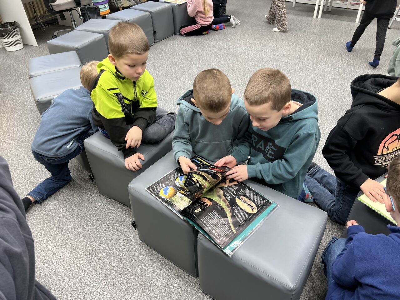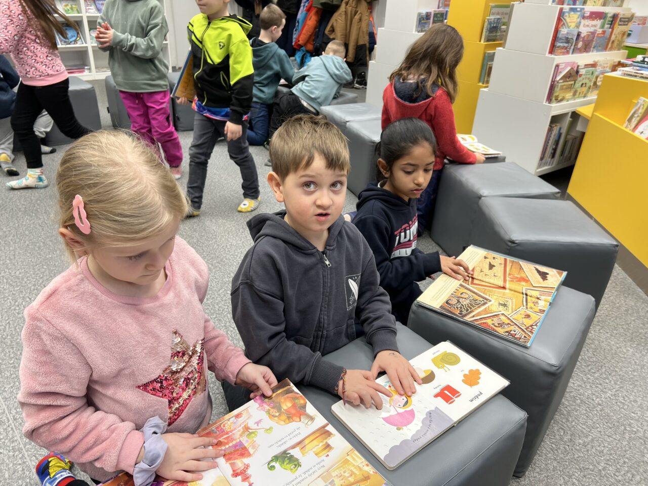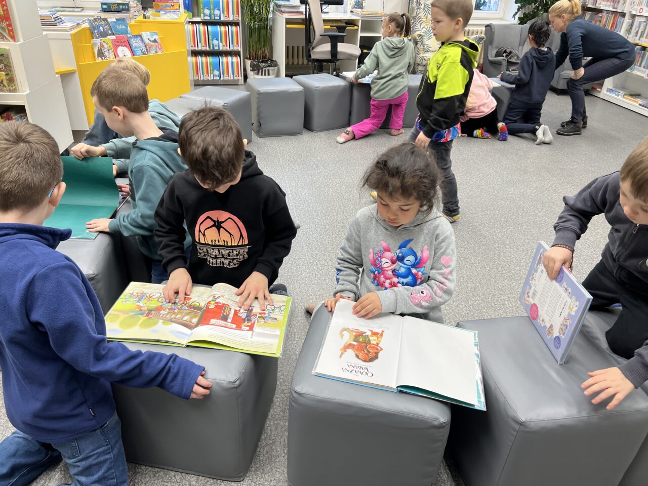 V pátek 23.1. jsme byli pozváni do knihovny. Přivítala nás milá paní knihovnice, která dětem vyprávěla o knihách. Děti se dozvěděly, jak s knihami zacházet, aby se nepoškodily, podle čeho jsou řazeny do polic, co všechno si v knihovně mohou půjčit. Nakonec si děti mohly knihy prohlédnout.