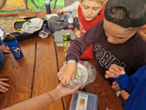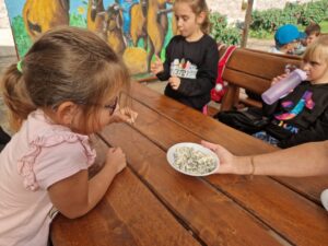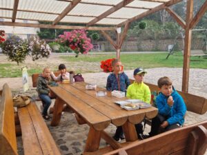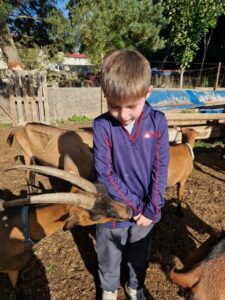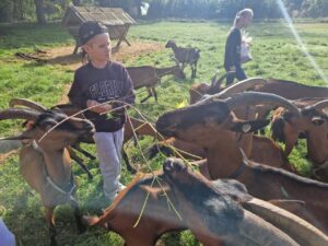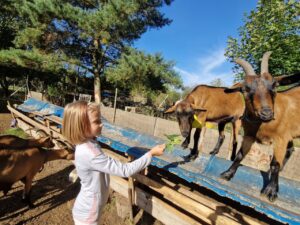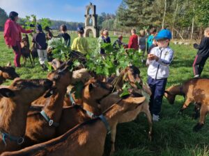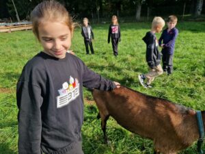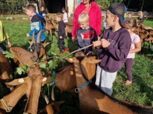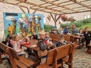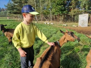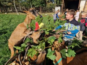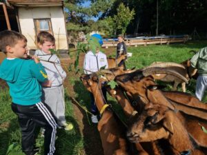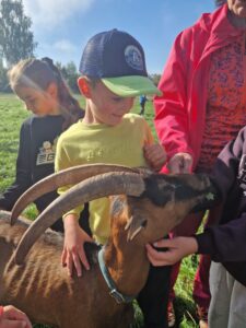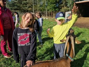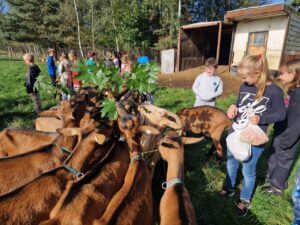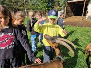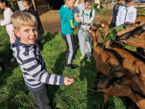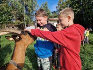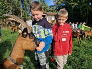 V rámci cvičení v přírodě jsme se vydali autobusem na KOZÍ FARMU na Ramši ( Nový Dvůr ).Výlet jsme si užívali hned od začátku, procházka byla velmi příjemná. Majitelé farmy byli velice milí a od začátku nám o všem hned vyprávěli. Po malé svačince od našich maminek jsme se podívali, kde se kozy rodí, žijí, kde a jak se dojí mléko. Dozvěděli jsme se, jak se o kozy starají, čím se krmí, jak se zpracovává mléko. Dokonce jsme si mohli kozy pohladit a nakrmit je. Na závěr nás čekala velmi chutná ochutnávka sýrů. Cesta do školy byla velice dlouhá. Nám to ale nevadilo a i když jsme se domů vraceli unavení, měli jsme spoustu krásných zážitků.