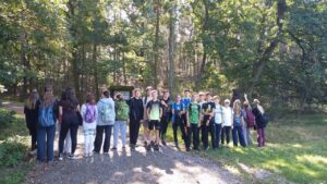 Cestou necestou, polem nepolem, šli jsme s velkým odhodláním a dobrou náladou za naší třídní (popravdě – většinu cesty šla ona za námi a my jsme na ni vždycky rádi počkali). A jaká byla naše letošní trasa? Využili jsme služeb MHD, která nás přiblížila do Okřešic a pak jsme vyrazili do Žizníkova. Romantika u rybníka, svačinka, azuro! Při zpáteční cestě proběhla tradiční fotečka. Holky nejsou zády záměrně, vyhlížely slíbeného tajemného lesního muže.