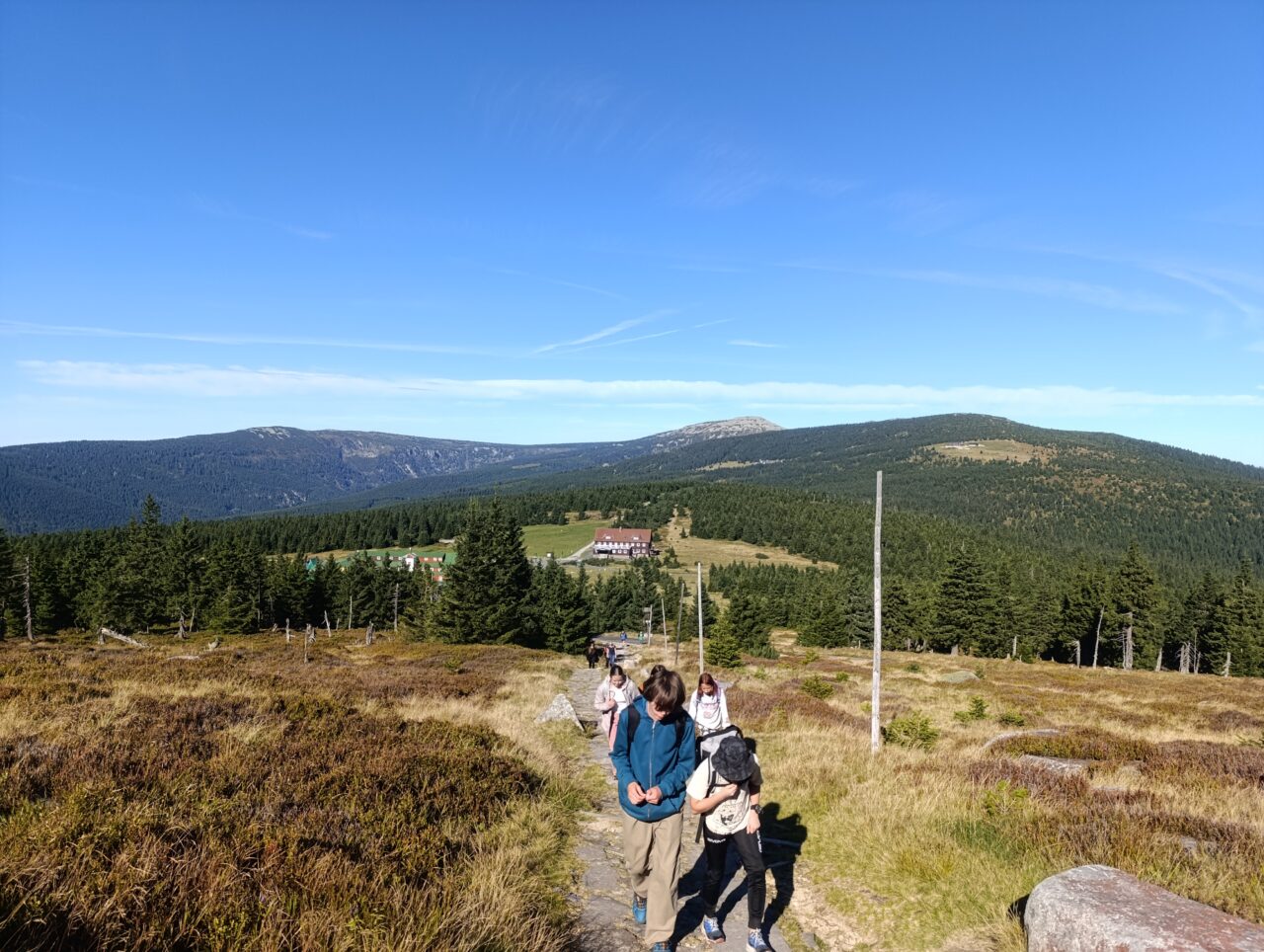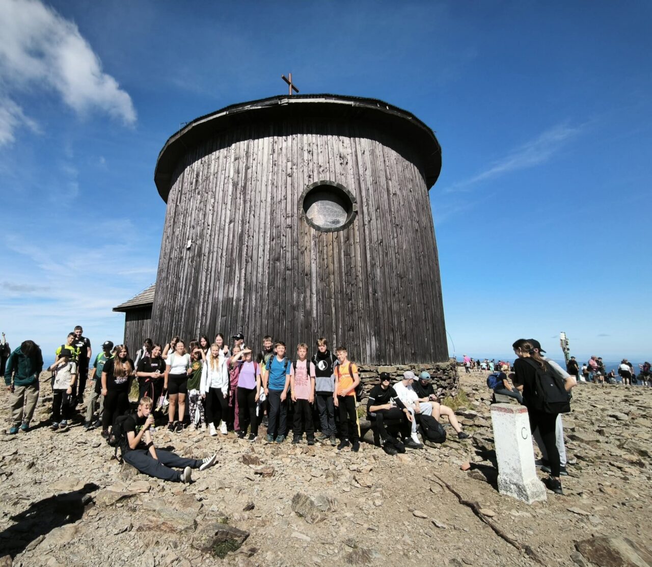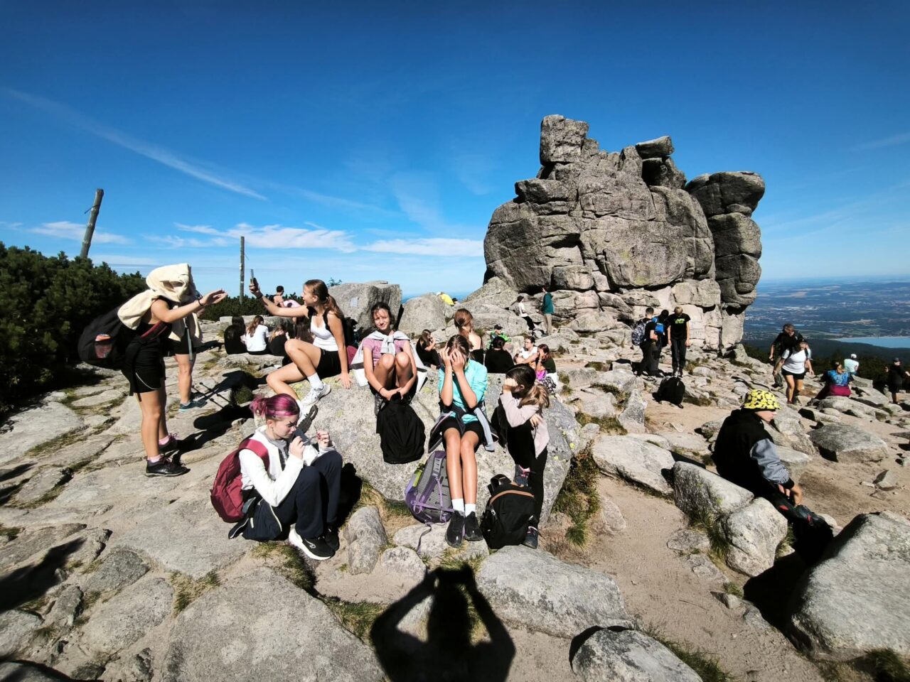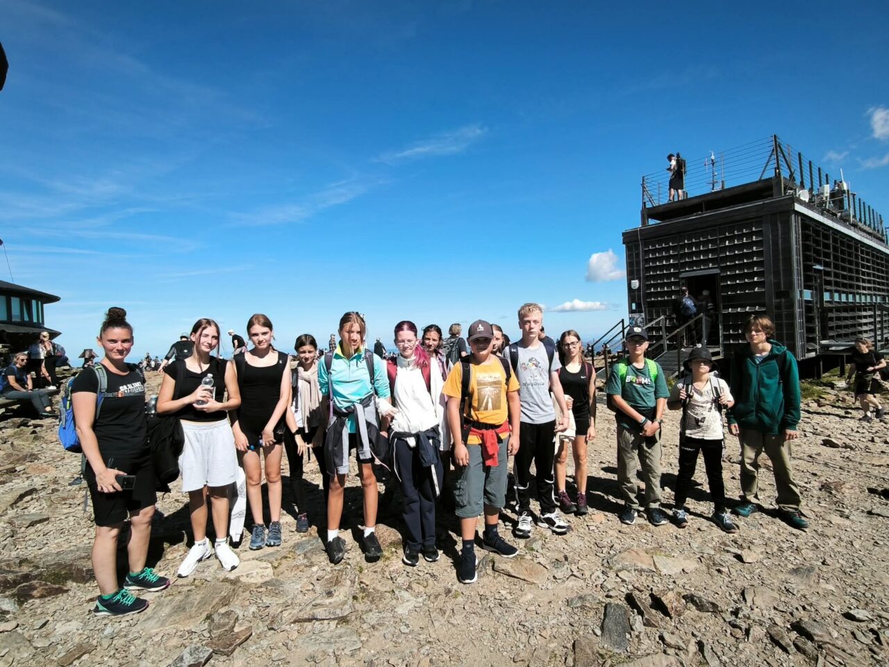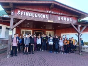 Osmé ročníky se vypravily do Krkonoš. Výstup jsme zahájili od Špindlerovy boudy za jasného počasí, které nás provázelo celým dnem. U Poledních kamenů jsme se občerstvili, nabrali sílu a pokračovali dál. V dálce už nám „mávala“ Sněžka. Pod vrcholem jsme se rozdělili na dvě skupiny a zahájili finální výstup. Hurá, pokořili jsme Sněžku! Škoda jen, že z naší třídy jelo pouhých 13 odvážlivců. Byli jste skvělí, děkuji.