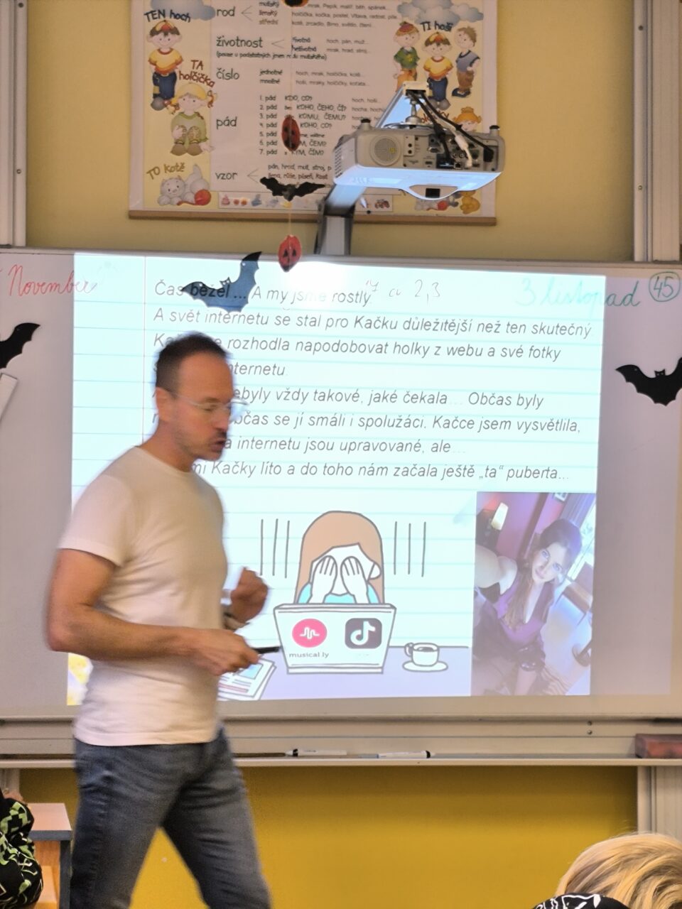 VYMYŠLENÁ KRÁSA je název přednášky, během které jsme se dozvěděli o tom, že každý člověk je jedinečný a svým způsobem krásný, že ideál krásy je pro každého jiný a žádný není špatný. Samozřejmě pokud to člověku neubližuje, jako například nadměrná obezita spojená s přejídáním nezdravých potravin a nedostatkem pohybu či naopak přílišná hubenost, která není daná geneticky, ale nedostatkem kvalitní a pestré stravy. Mnohé z nás překvapilo, že modelky z reklam nejsou ve skutečnosti tak krásné, štíhlé a bez jediné chybičky jako na plakátech a v časopisech, ale je to jen iluze, ke které jim pomohli šikovní maskéři, kadeřníci a v neposlední řadě fotografové, kteří jejich fotografie dost upravují. Neměli bychom tedy věřit každé fotografii a videu na internetu, kde jsou jen bezvadní svalnatí kluci a nádherné štíhlé holky, protože ve skutečnosti takoví vůbec být nemusí. Neměli bychom se jim chtít vyrovnat a ničit si zdraví nesmyslnými dietami, které mohou skončit bohužel i mentální anorexií.