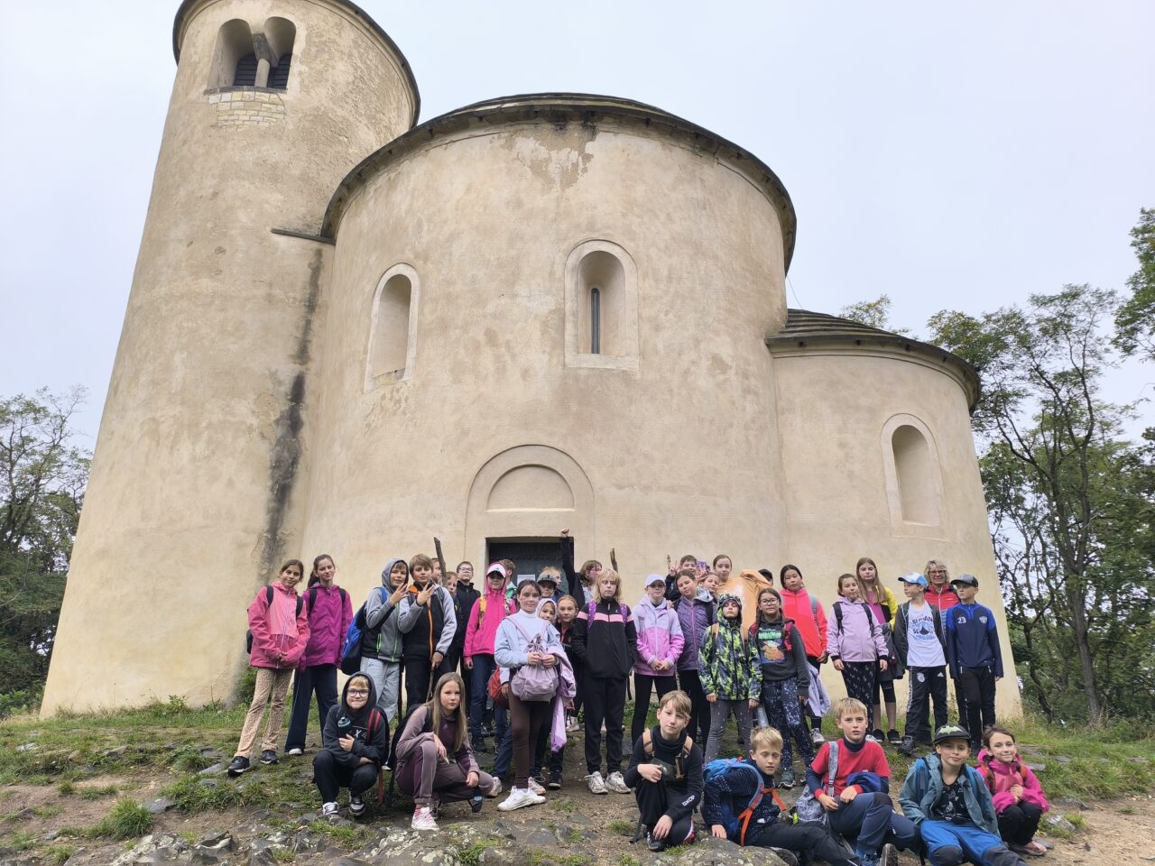 Jelikož HistoryPark je nedaleko hory Říp, nedalo nám to a vypravili jsme se také po stopách praotce Čecha až na její vrchol. Cesta z obce Ctiněves je sice o něco kratší než ta z Krabčic, ale o to je prudší a kamenitější. Všichni túru zvládli a společně jsme se ocitli na stejném místě jako podle pověsti i naši předci v čele s praotcem Čechem. Rotundu sv. Jiří jsme sice našli zavřenou, ale to neubralo nic na její kráse a stavební jednoduchosti románského slohu. Velkou odměnou za výstup všem bylo teplo a občerstvení v restauraci. Potom nás už čekal sestup do zmiňovaných Krabčic, kde jsme nasedli na autobus.