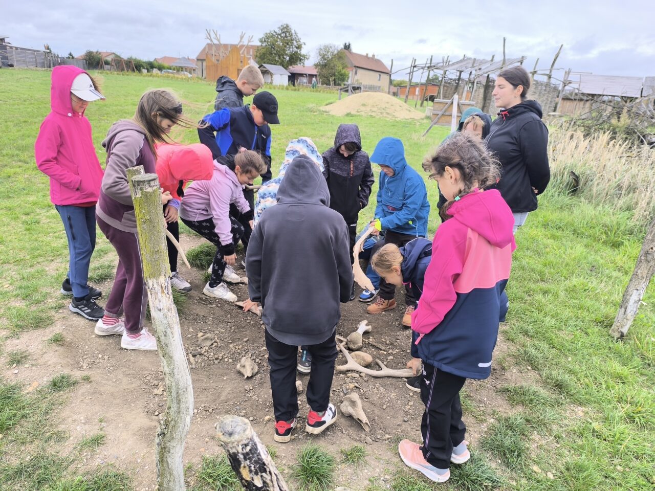 Dnes jsme se v rámci ročníkového projektu PRAVĚK vypravili do HistoryParku v Ledčicích nedaleko hory Říp. Tady jsme měli možnost si vyzkoušet práci archeologů a také jsme se dozvěděli mnoho zajímavých informací z Pravěku. Absolvovali jsme velmi zajímavý a zábavný program, složený ze tří částí, který trval dvě a půl hodiny. Nejdříve jsme se strojem času dostali přímo do Pravěku. Mohli jsme vidět pravěká obydlí jak ze starší, tak z mladší doby kamenné, a i to, jak lidé žili a čím se zabývali a jak se živili. Zjistili jsme jakým způsobem se rozhodně mamuti NEMOHLI lovit, ale i jak se lovili. Dokonce jsme si svého mamuta také mohli „ulovit“. V době železné jsme se setkali s Římany a jejich opravdu důmyslnou vojenskou strategií. Poté se z nás stali archeologové, kteří odkrývají ostatky těl a zjišťují kdo je v nalezišti pohřben. Pátrali jsme kdo to asi je, z jaké doby asi je a čím se asi za života zabýval. To vše jen z předmětů nacházejících se v hrobě u ostatků. Nakonec jsme se dostali do keramické dílny a pracovali s hlínou s jakou kdysi možná pracoval i neznámý tvůrce Věstonické Venuše. Naše výtvory asi nepřežijí staletí, a nebudou se z nich děti učit o historii, ale jejich výroba nás všechny moc bavila.