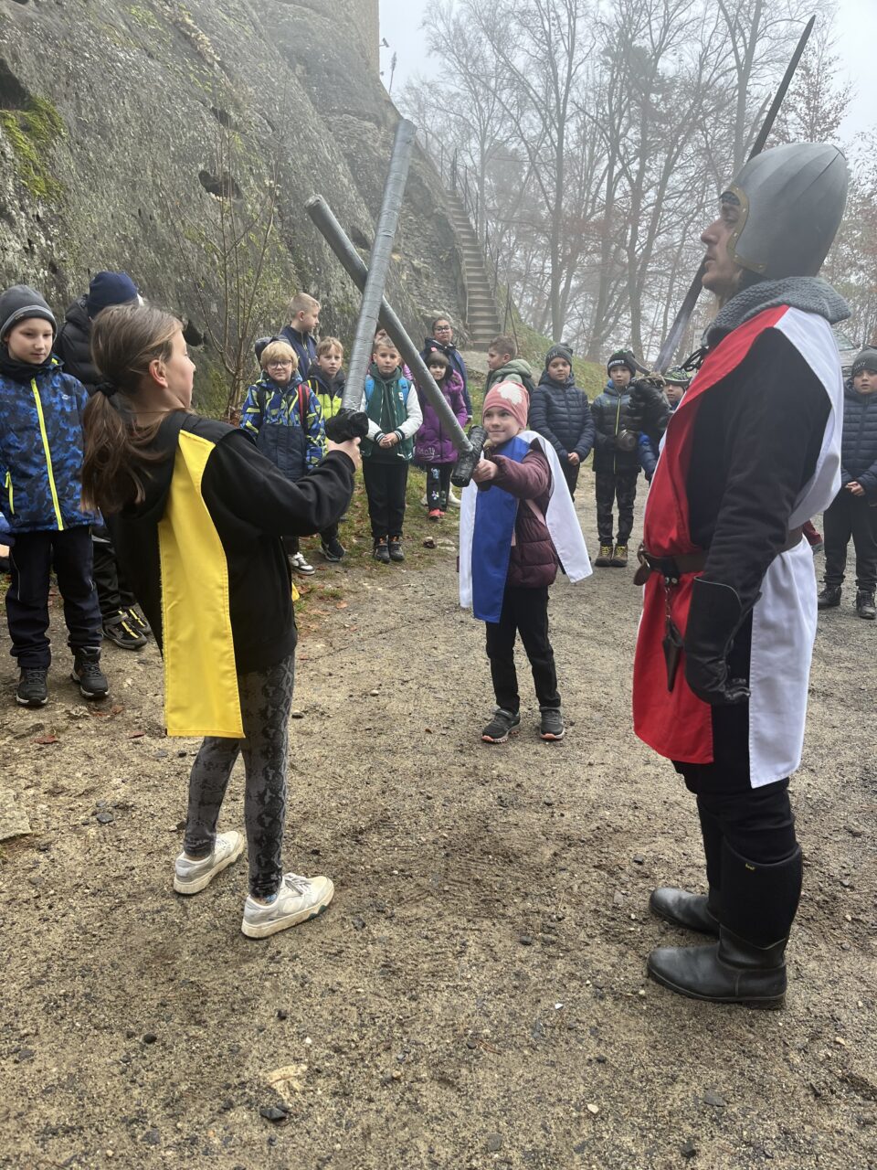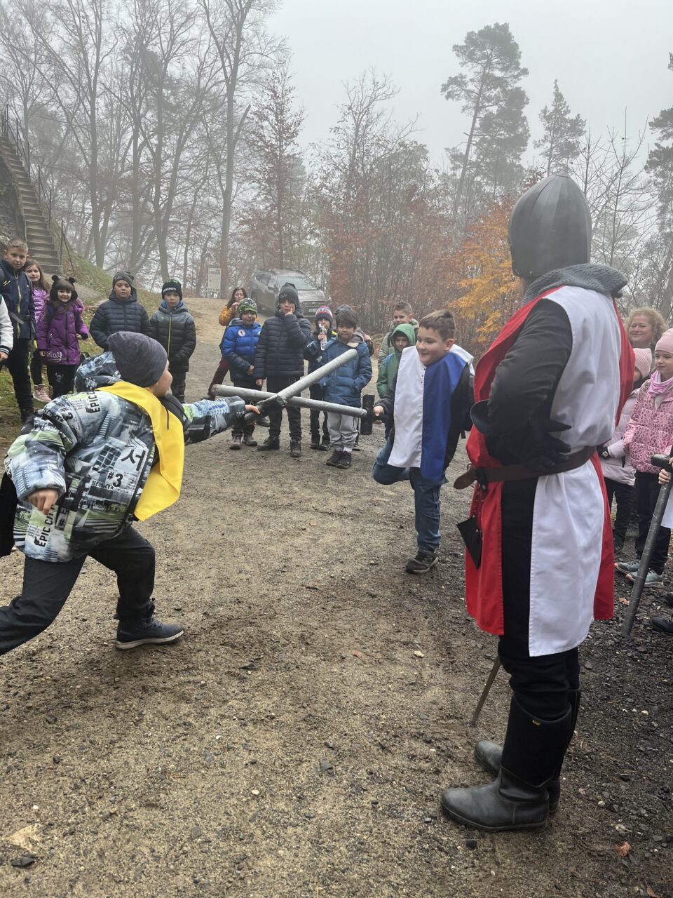 Stopy nás zavedly až k hradu Kokořín, kde jsme utkali s chrabrým rytířem v pravém rytířském boji. Vystoupali jsme do středověkého paláce, kde nás přijmul samotný sv. Martin. Vylíčil nám legendu o svém životě a seznámil nás s tradicemi, které se v den jeho svátku v dřívějších dobách dodržovaly. Na hradě jsme navštívili všechna tajemná místa, od hradního sklepení až po vysokou věž. Bába kořenářka nám pověděla o léčivé i magické síle bylinek, přiblížila nám svátek sv. Ondřeje a každý si zkusil věštit svou budoucnost.
