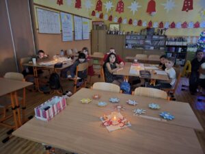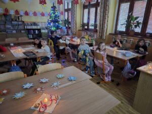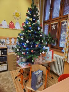 Ve čtvrtek jsme se rozloučili před prázdninami krásnou vánoční besídkou. Pochutnali jsme si na skvělé vánočce a dětském šampíčku od Jeníka Ulmana. Snědli jsme čokoládky z adventního kalendáře, koukali jsme na pohádky, u kterých jsme jedli ŠŤASTNÉ JABLÍČKO. Rozdali jsme si dárečky, které se objevily pod stromečkem a zazpívali jsme si některé vánoční koledy. Celé dopoledne nám rychle uteklo a my jsme si užili báječnou vánoční atmosféru.