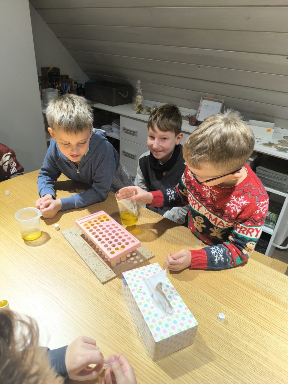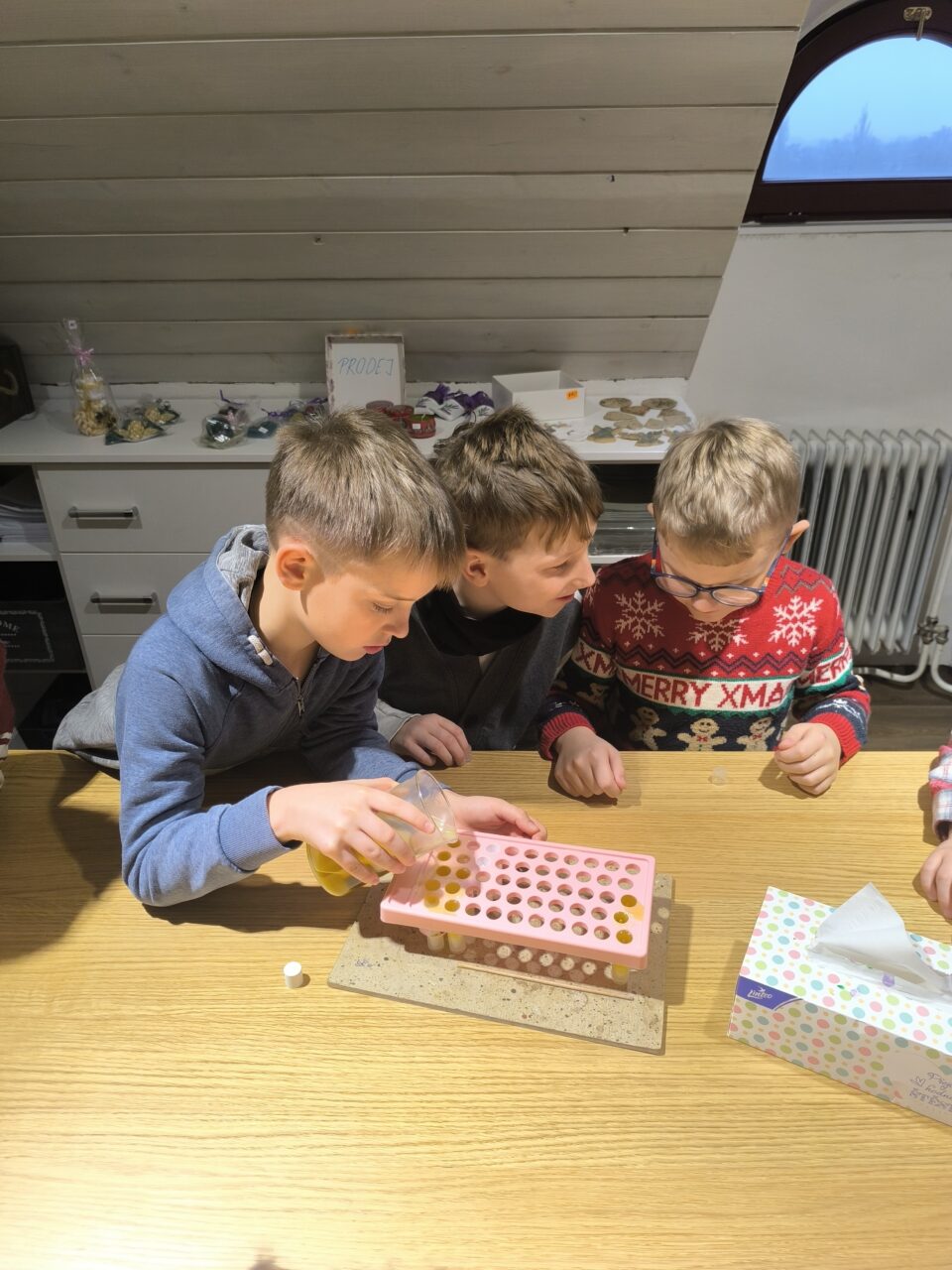 V předvánočním čase jsme se vypravili do městského muzea, poslechnout si zajímavé povídání o využití a účincích nejrůznějších rostlin. Od paní lektorky jsme se dověděli o tom, jaké účinky nejrůznější bylinky mají na naše tělesné, ale také duševní zdraví. Připomněli jsme si jakými způsoby se extrakty z rostlin získávají, nakonec jsme si všichni vyrobili balzám s obsahem levandule nebo eukalyptu podle vlastní volby. Doufám, že tento malý dárek udělal radost maminkám, babičkám, nebo sestřičkám podle toho pro koho je děti s láskou vyráběly. Nakonec jsme si užili krátkou prohlídku další části expozice muzea. Těšíme se, že se sem brzy vrátíme a uslyšíme zajímavé informace, nebo objevíme exponát, který jsme ještě neviděli.